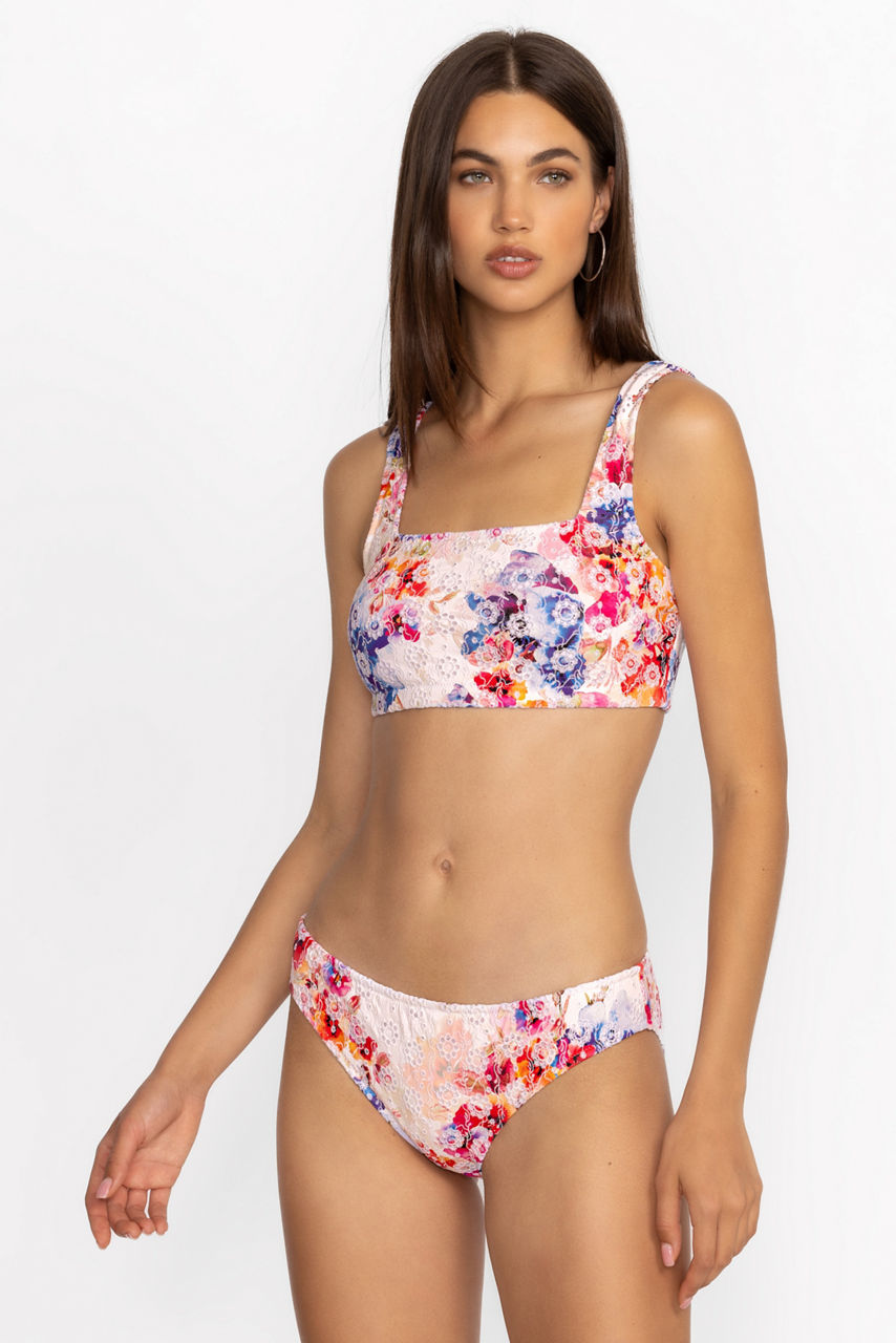 Crafted from an intricate eyelet fabric adorned with brilliant color, the Summer Days Eyelet Bikini Top is equal parts functional and fun. Featuring a square neckline and wide shoulder straps, this colorful swim top is finished with a wide banded bodice. Pair with the Summer Days Eyelet Hipster Bottoms and a linen button-down for a perfect poolside look.