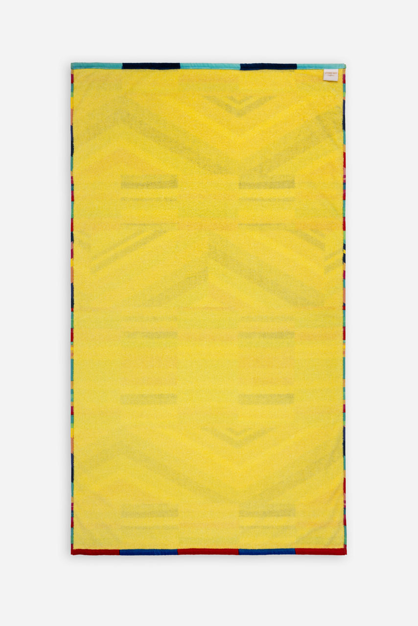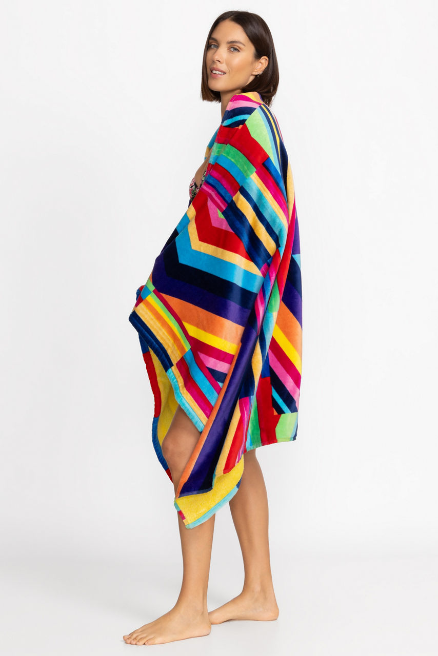 Offering a playful addition to your surfside adventure, the Summer Stripe Beach Towel, is both fun and functional. Printed with bold colorful stripes and designed with eye-catching patterns, this generously sized towel is perfect for sunbathing or drying off after a day in the water. Pair with vibrant swimwear for a coordinated look.