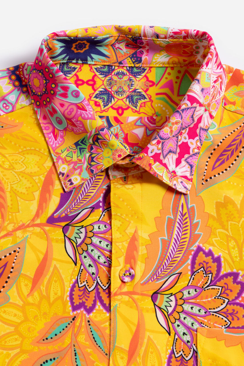 Offering a playful twist on traditional menswear, the Sunshine Mix Men's Coverup Shirt is perfect for your next vacation. Crafted from a polyester blend with a hint of stretch, this shirt features a classic collar and button front adorned by a fresh bold floral pattern. Pair with swim trunks or white linen shorts for a sunny day at the pool.