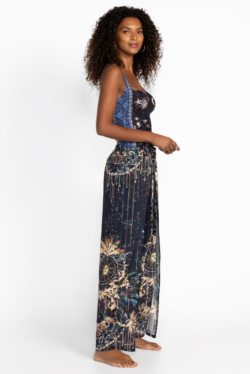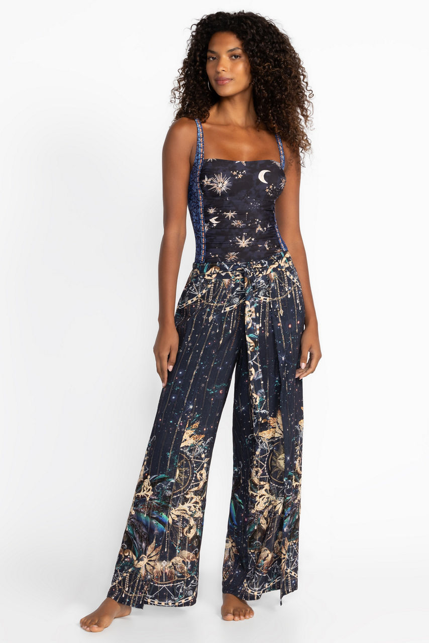 Featuring a contoured waistband with a sewn-in self tie, the Supernova Wrap Pant is completed with a relaxed split leg line for unmatched comfort. Pair with the Supernova One Piece to complete the look.