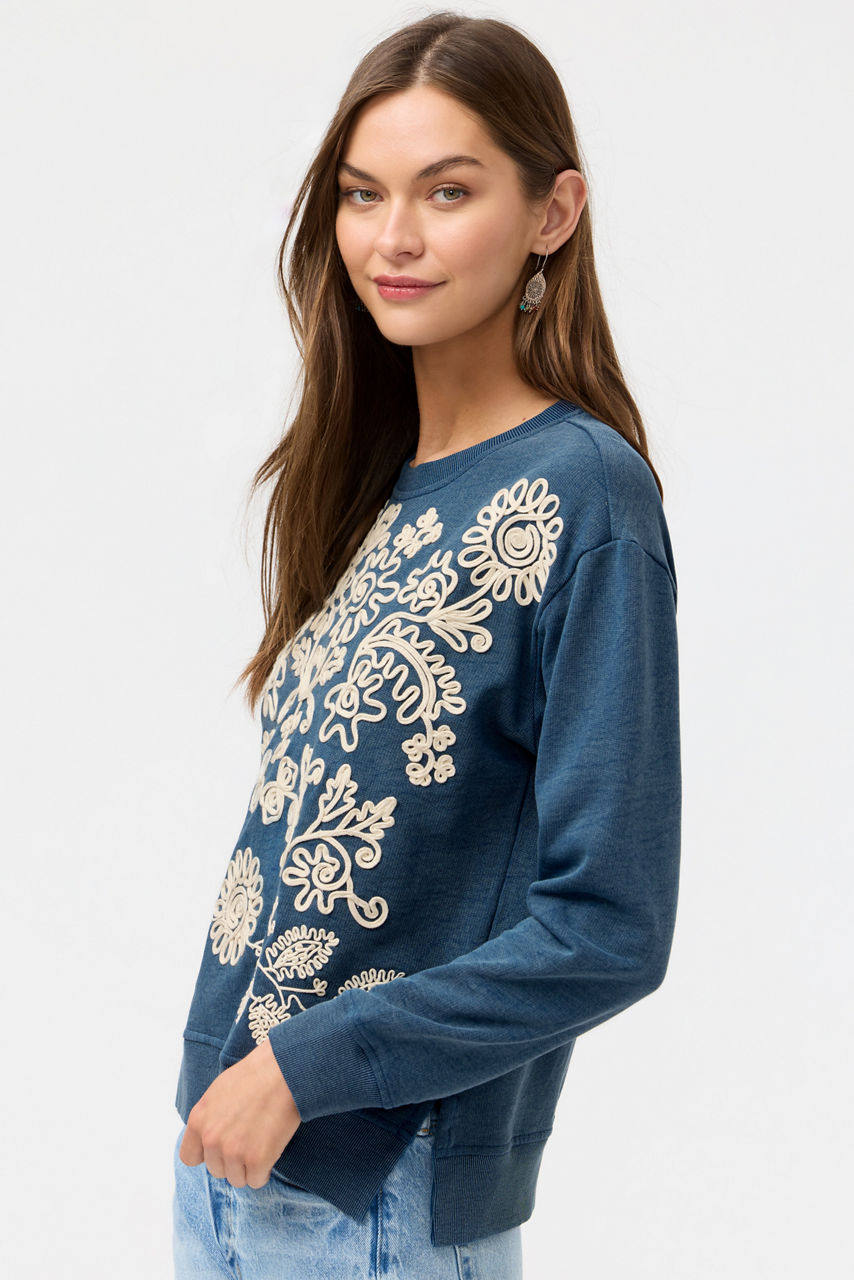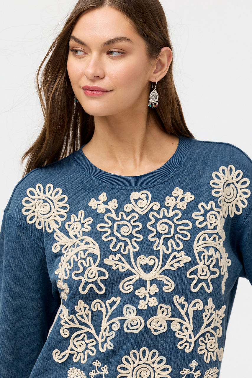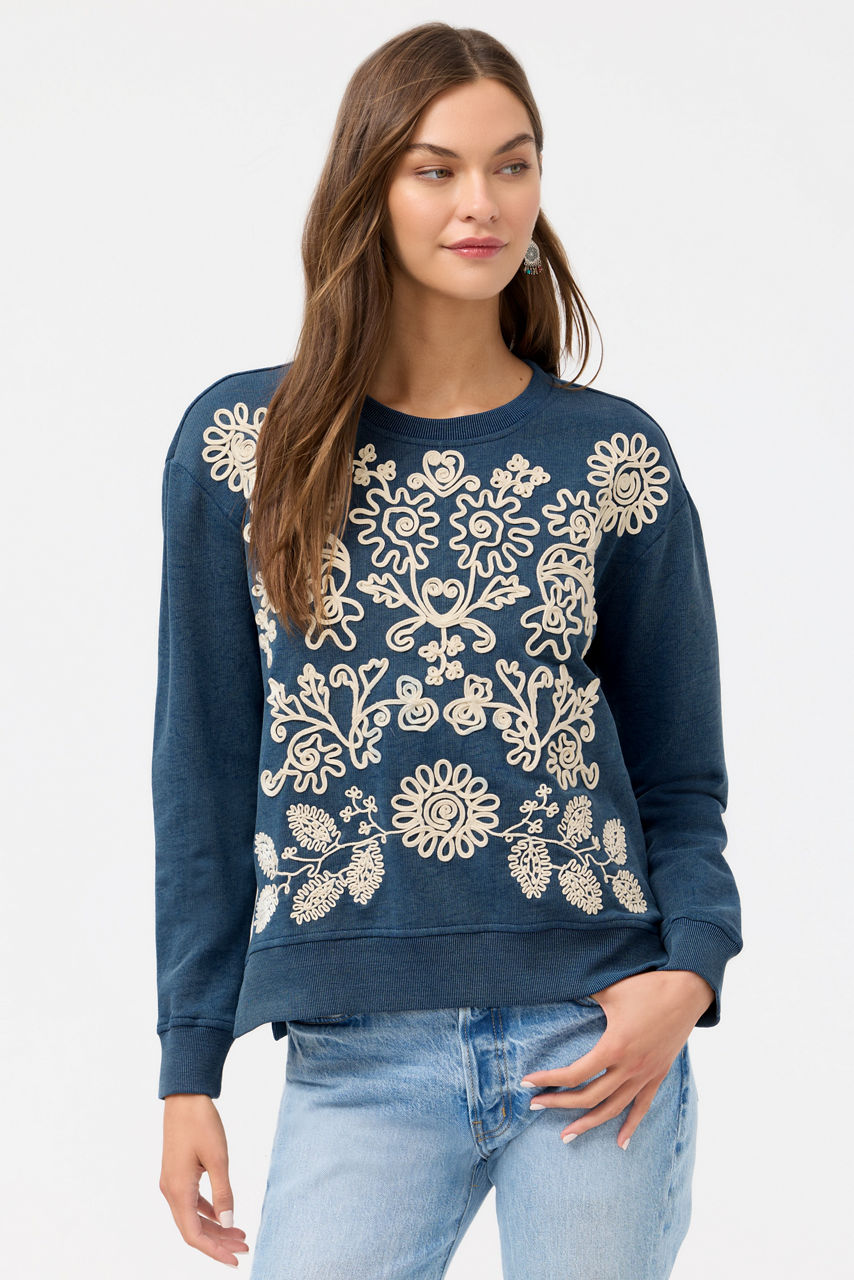 Crafted from breathable 100% cotton, the Mariko Sutash Sweatshirt is equal parts cozy and comfortable. Designed with a crew neckline and long sleeves, this classic sweatshirt silhouette is embellished with intricately embroidered floral detailing for a polished casual style. Pair with linen pants and easy loafers for a weekend getaway.