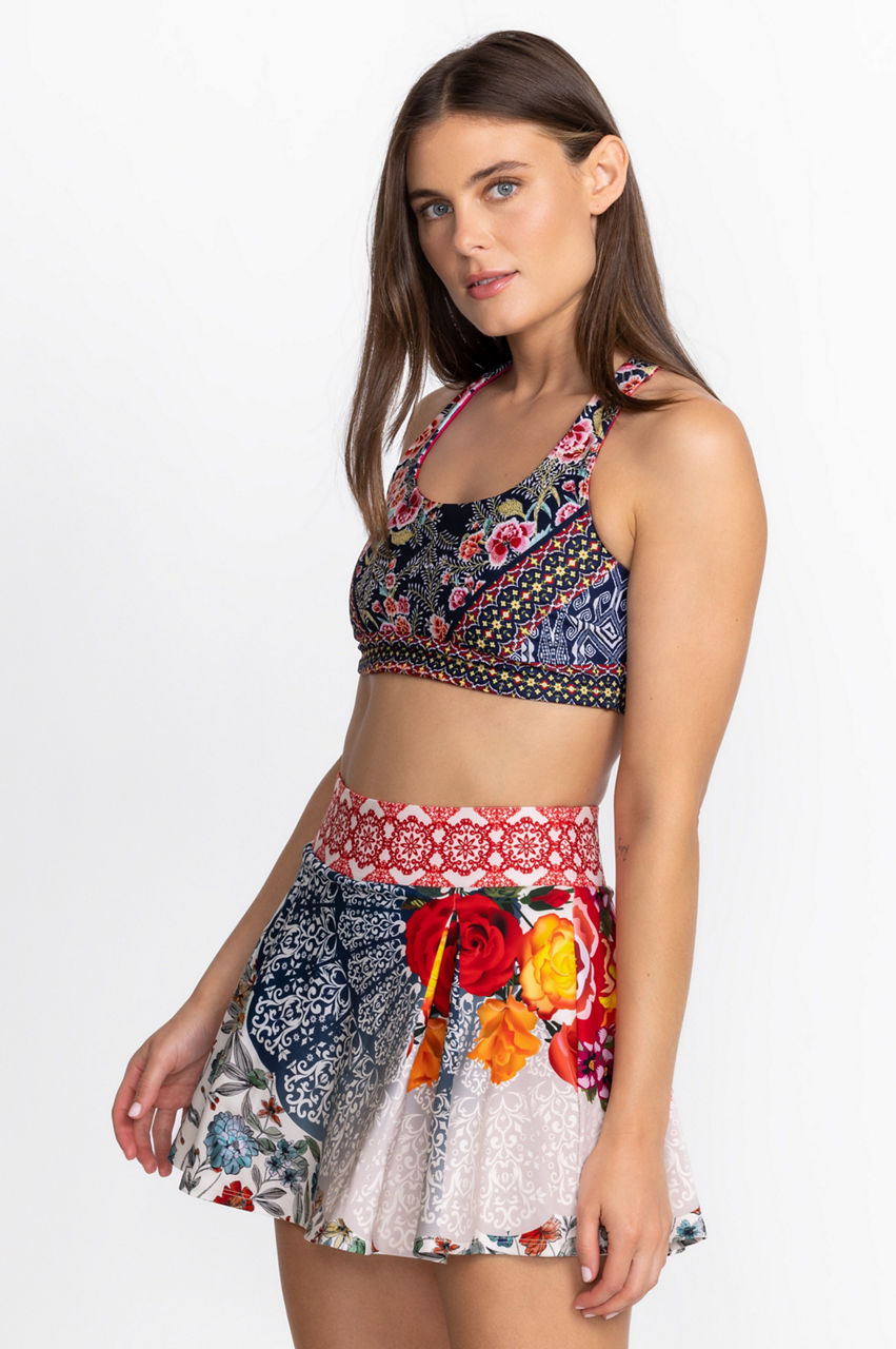 Crafted from an absorbent fabric, the Tango Pleated Tennis Skirt is a playful choice for court days. This mini skirt boasts a printed elastic waistband, an inner short lining for added comfort, pleats, and a bold floral pattern in a bright color scheme. Style this tennis skirt with a tank top and sneakers for a stylish match ensemble.