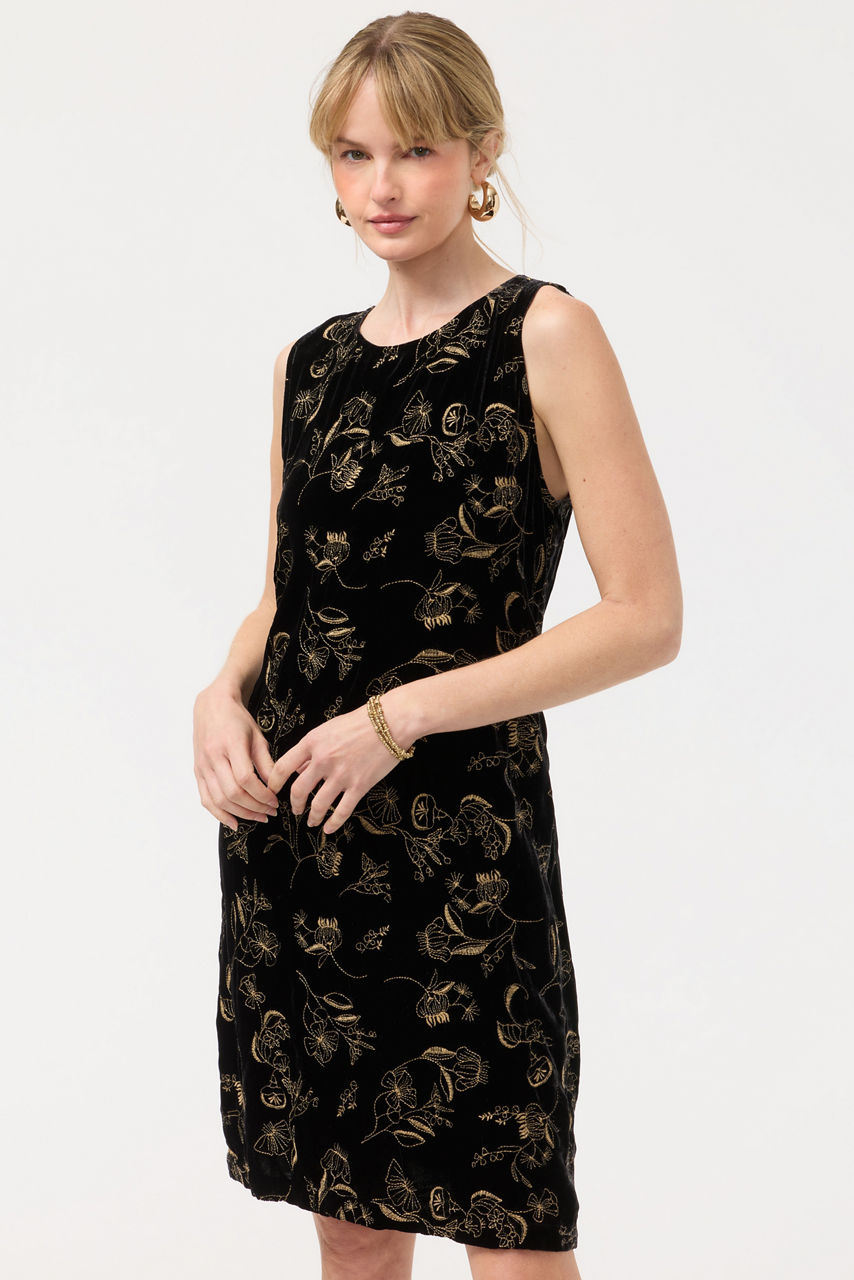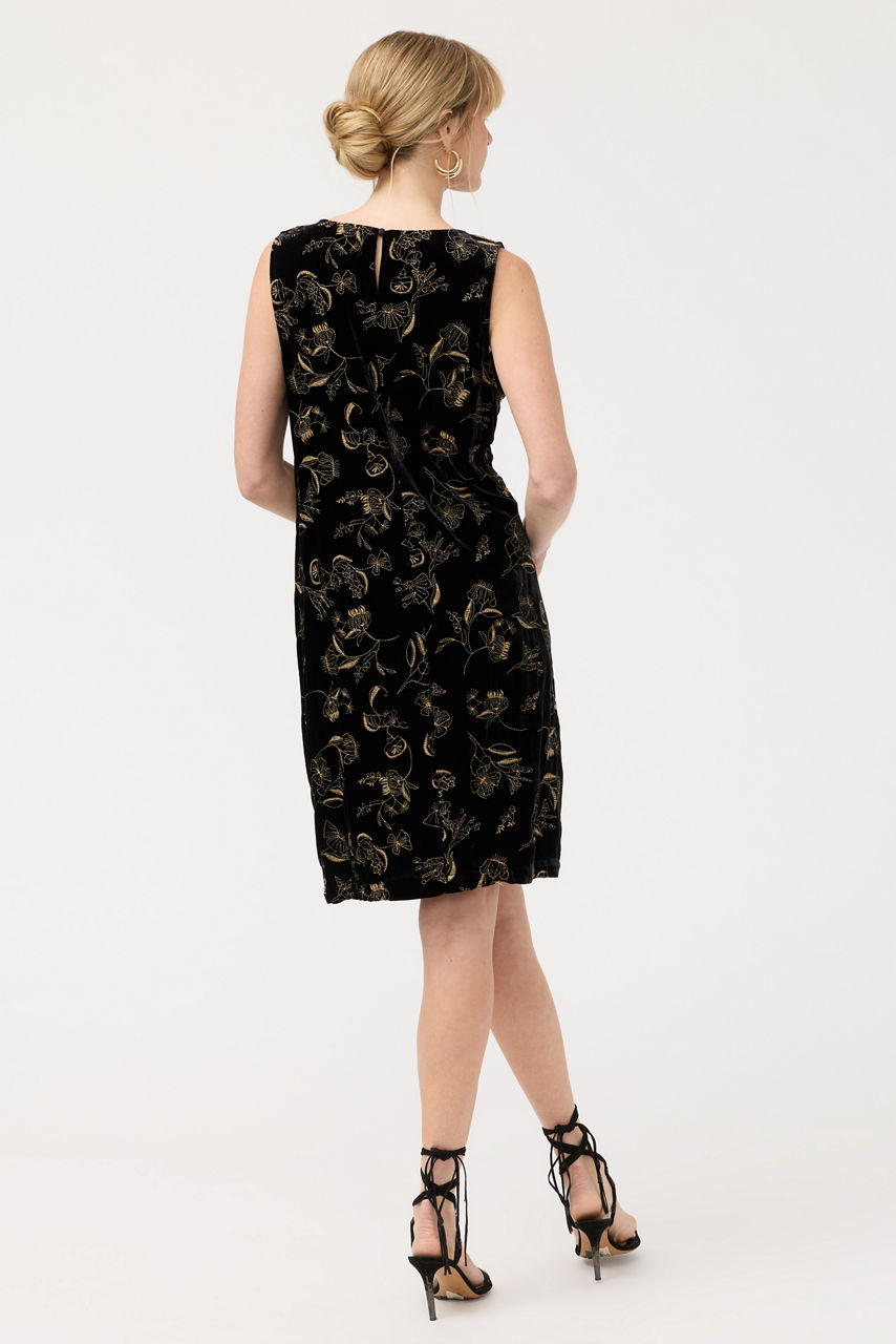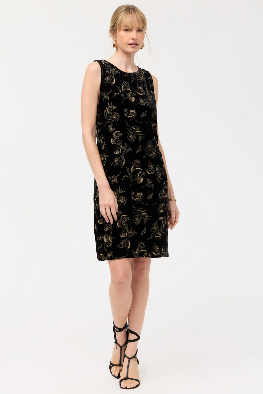 Crafted from a soft silk blend, the Tank Keyhole Dress is accented with a bold golden print. Cut with a boat neckline with a keyhole detail at the back, this sleeveless dress is finished with an elegant straight silhouette. Pair with heels and gold accessories for a perfectly coordinated evening look.