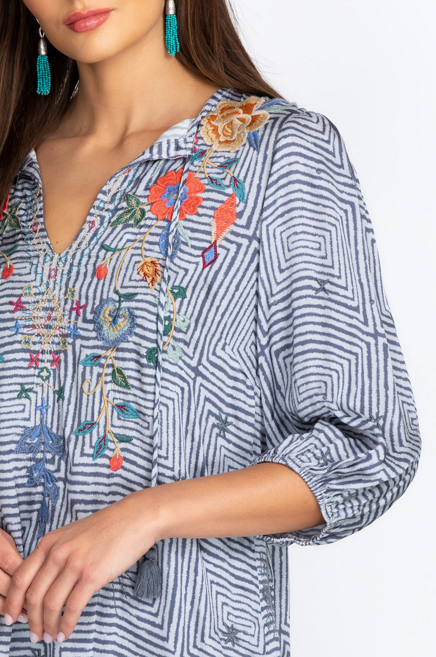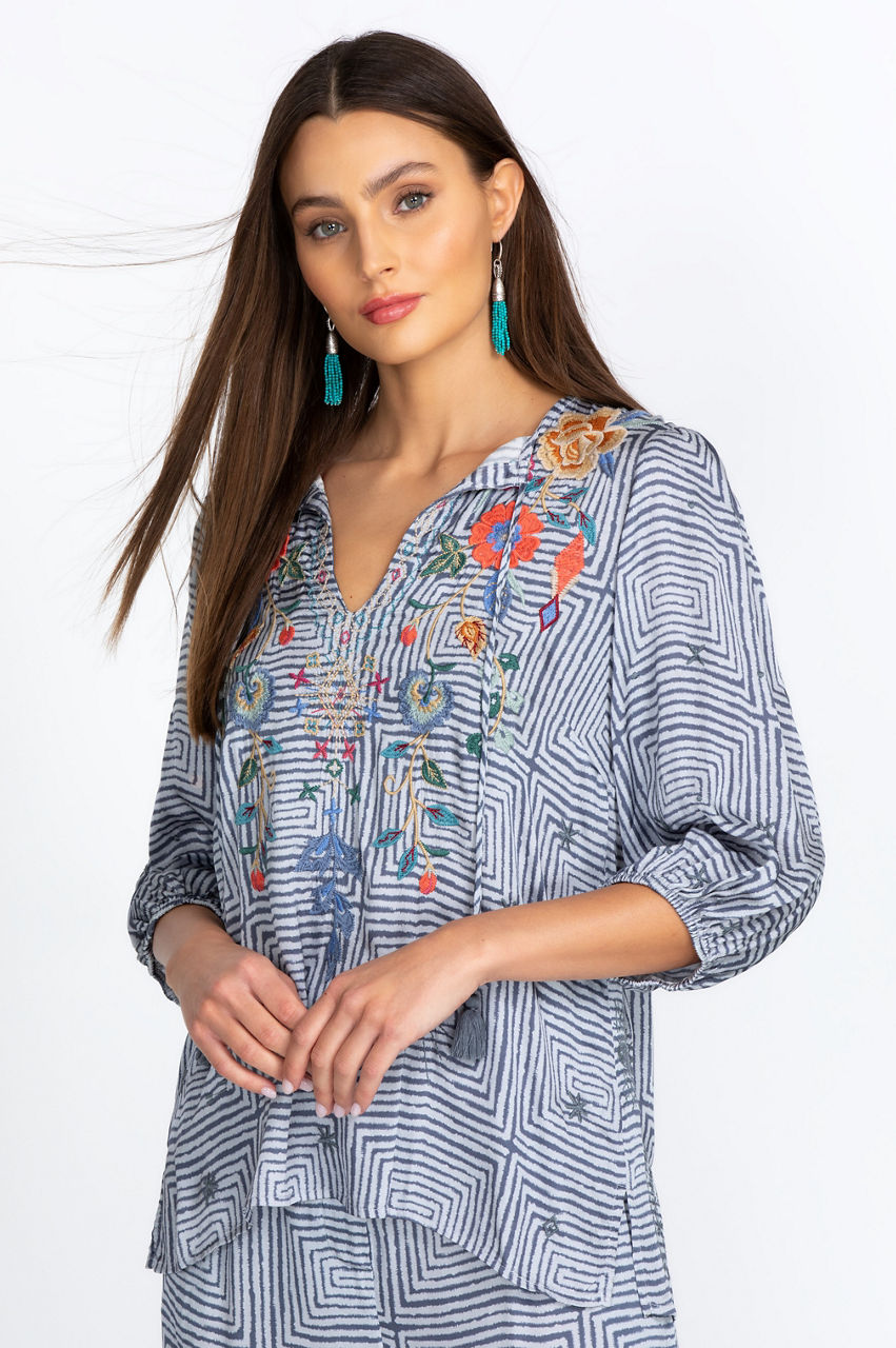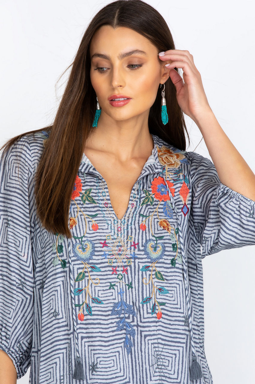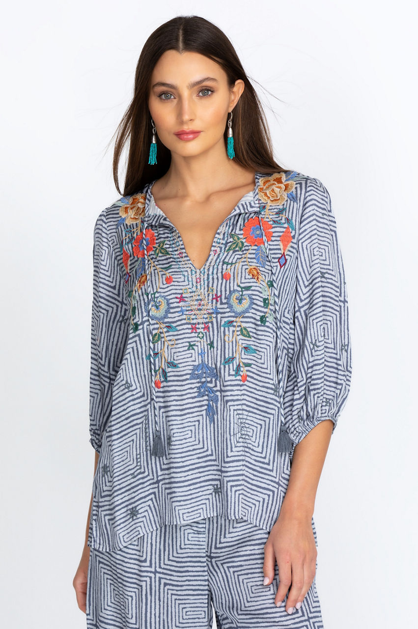 The Taryn Flowy Tassel Blouse is a gorgeous top perfect for sunny days and beachside activities. Made of 100% viscose, its floral embroidery design complements well with skinny jeans and slides. It features a tassel accented split neck and balloon sleeves for an elegant, subtle touch. Its flowy silhouette is a stunning design and a great top to add to your summer collection.