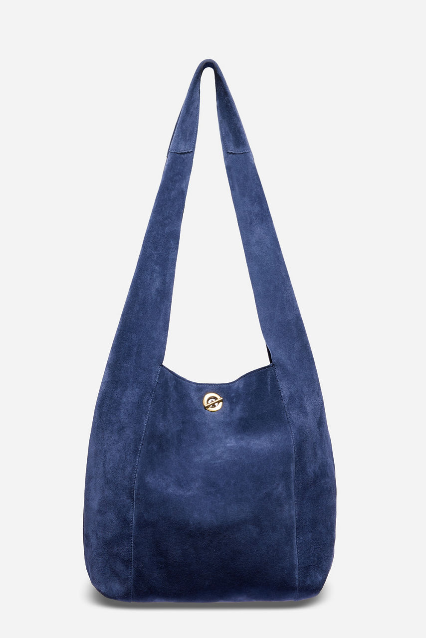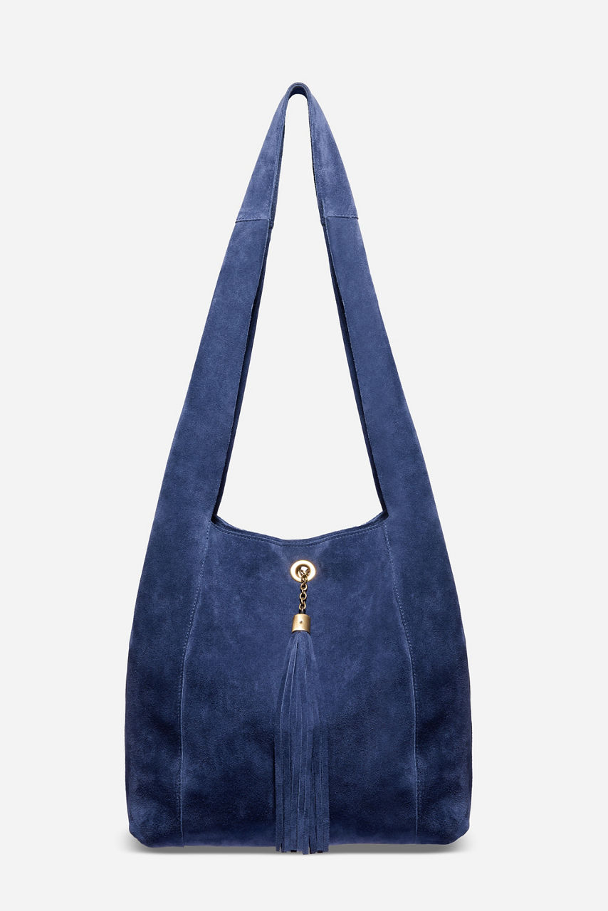 Crafted from 100% suede in an iconic blue hue, the Tassel Chain Italian Suede Hobo Bag is equal parts stylish and functional. Made in Italy and designed with a wide shoulder strap and large top opening at the top, this bag is embellished with a tassel suspended from a hook-and-eye closure for a hint of glamour. Pair with casual daily wear for elevated styling.