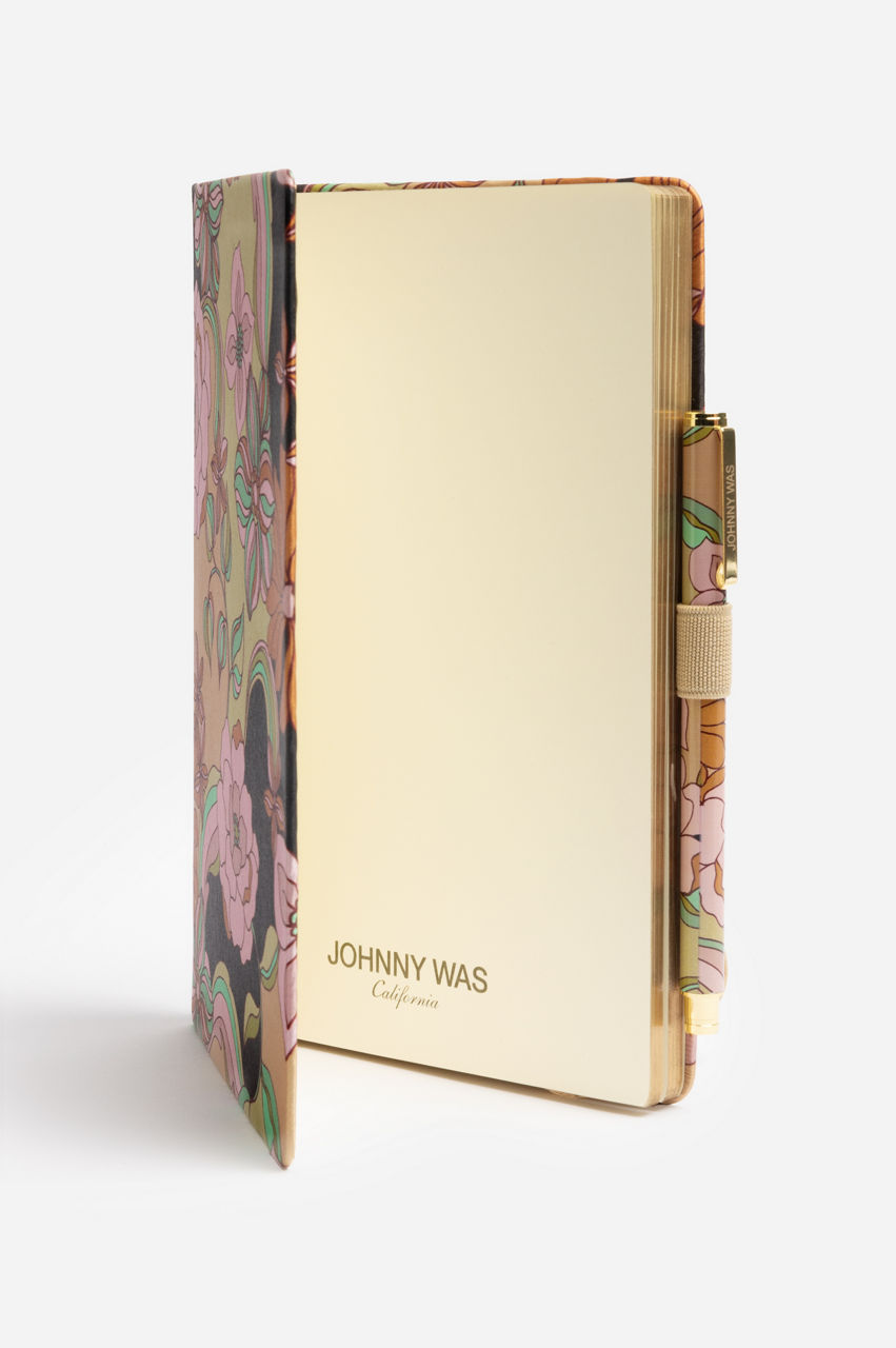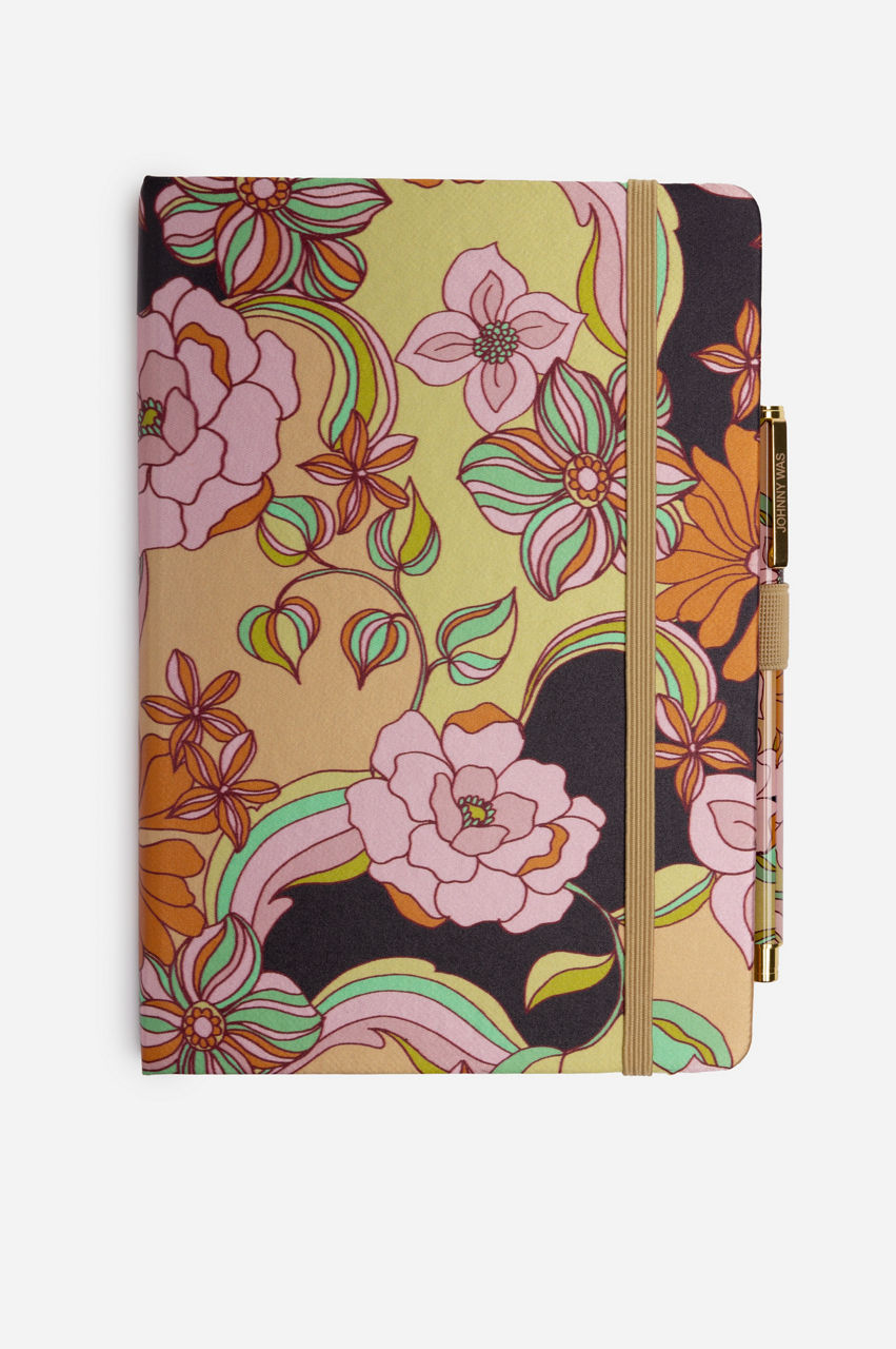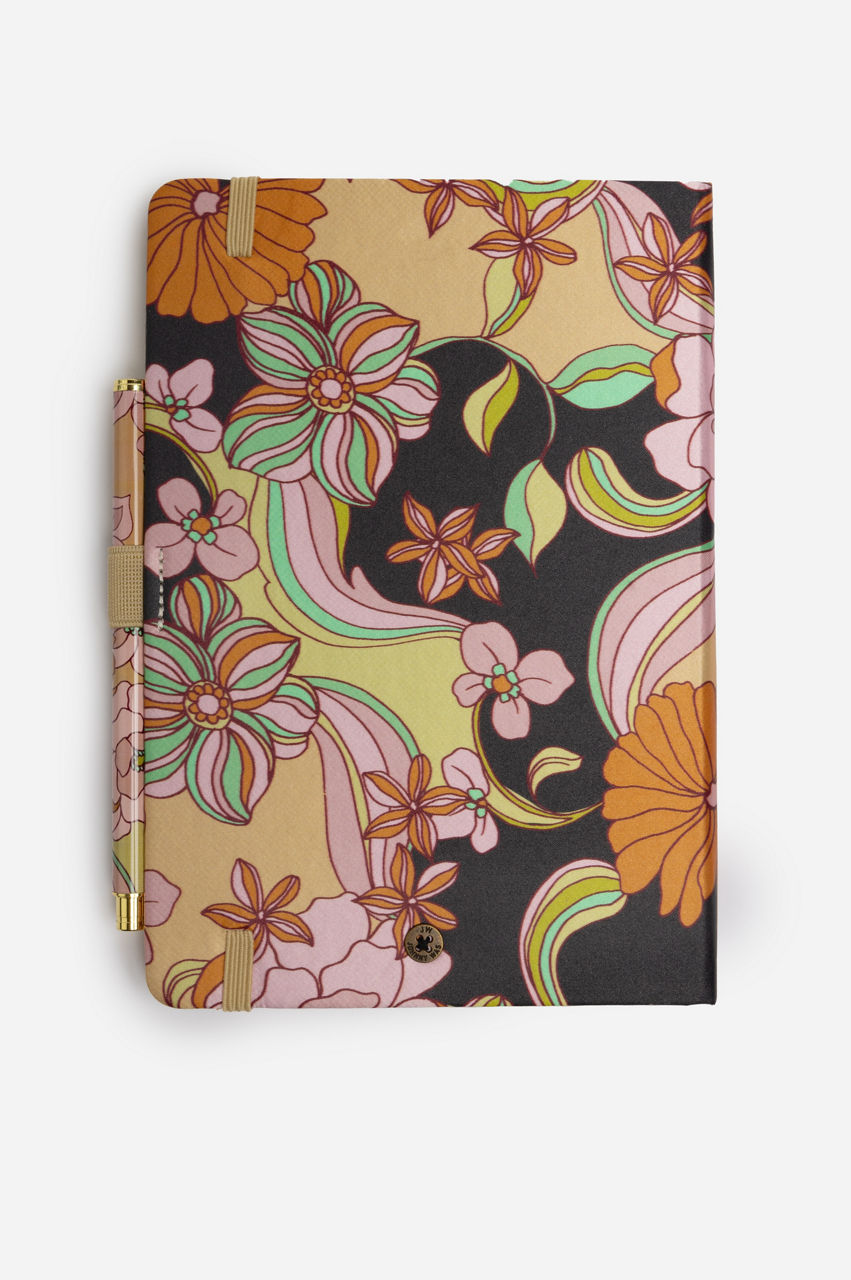 Made with a silk blend cover, the Legendary Journal + Pen Set emanates a vibrant 60s vibe thanks to its joyful florals. Adopting an eye-catching black and pastel colorway, this set includes a floral print pen and a matching journal. Use this set for everything from journaling to meeting notes.