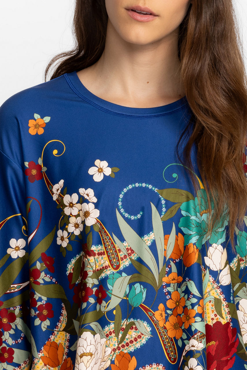Crafted from a fade and shrink resistant fabric, the Teebee Step Hem Tee is characterized by vivid, fragrant florals and a flyaway back. Boasting a nice drape, this moisture-wicking top is designed with a round neck, short sleeves, and a step hem. Pair this tee with printed leggings for a versatile exercise ensemble.