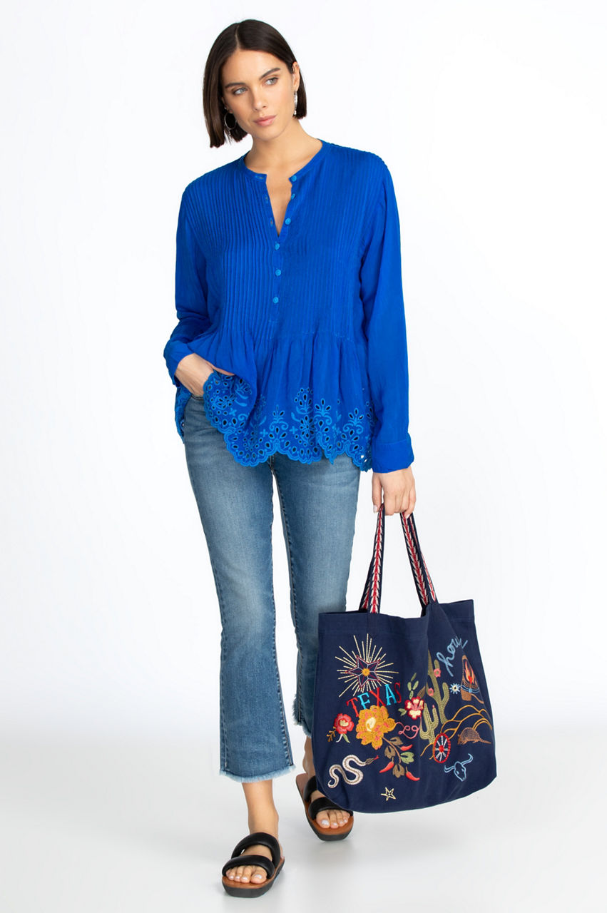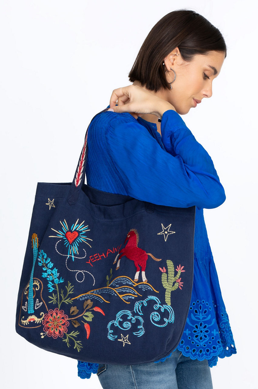 Crafted from rich 100% cotton, the Texas Everyday Tote features brilliant, embroidered Texas iconography. Designed with embroidered top handles and a spacious interior, this casual bag is as unique as the state it represents. Pair with a relaxed shift dress and classic sandals for a resort-inspired vacation ensemble.