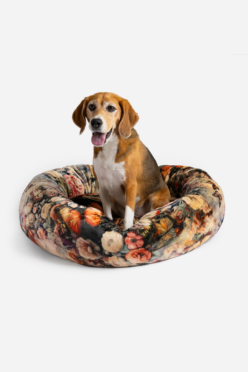 Accented with vibrant blooms, the Teyros Large Dog Bed offers your furry friend a cozy napping area with elevated style. Adorned with a rich floral motif, this comfy dog bed creates a dedicated space for your beloved pet. Add to your family living space or your bedroom to enhance your home decor.