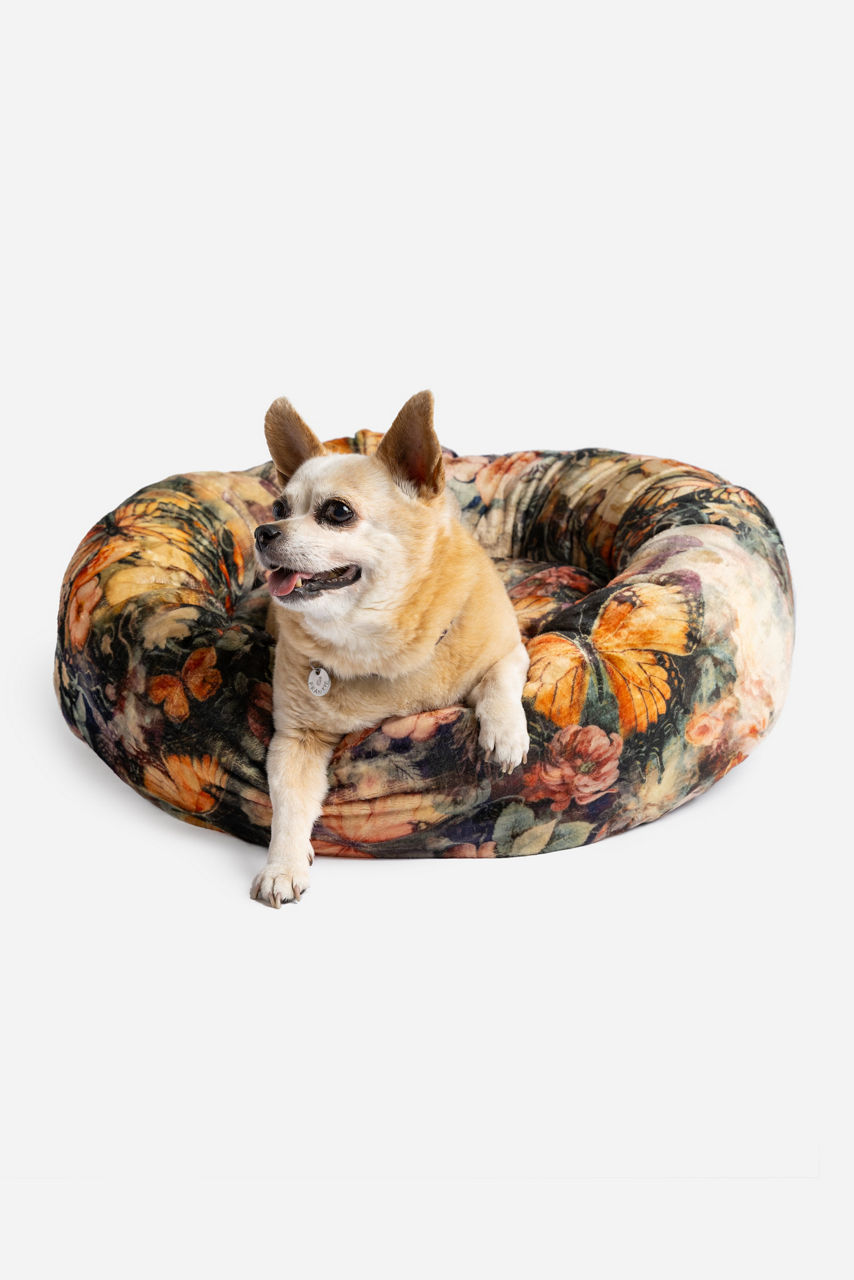 Accented with vibrant blooms, the Teyros Small Dog Bed offers your furry friend a cozy napping area with elevated style. Adorned with a rich floral motif, this comfy dog bed creates a dedicated space for your beloved pet. Add to your family living space or your bedroom to enhance your home decor.
