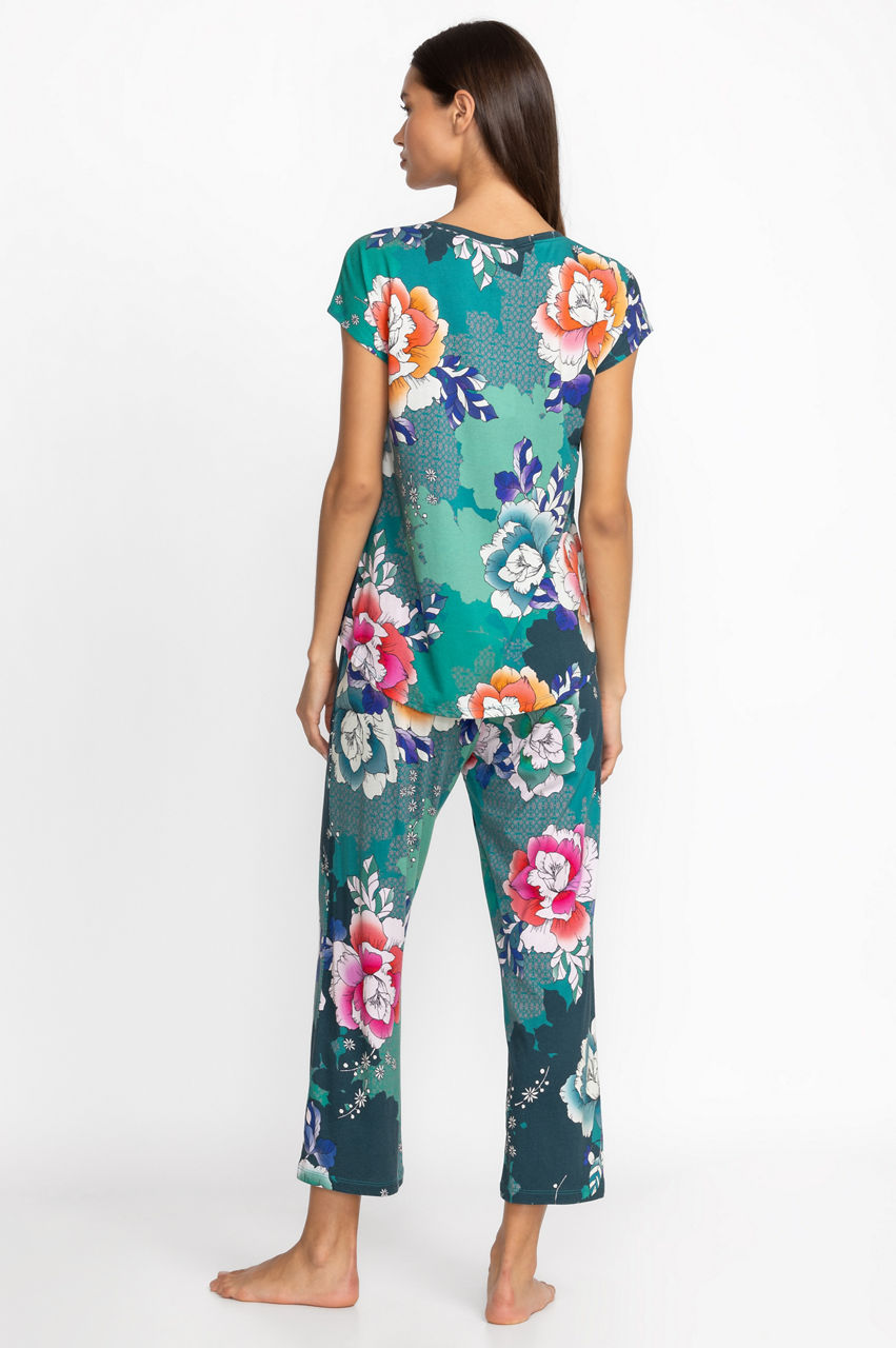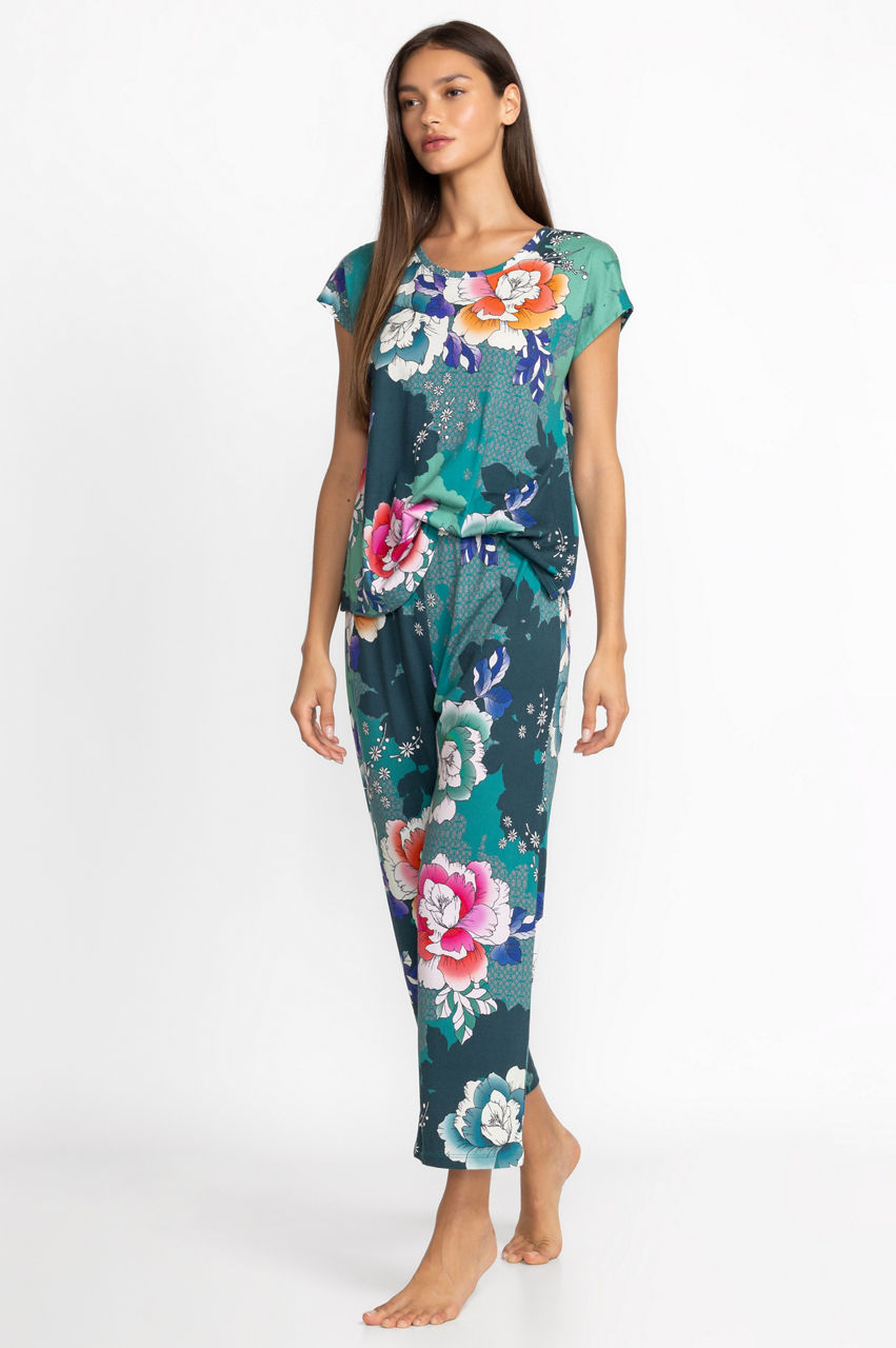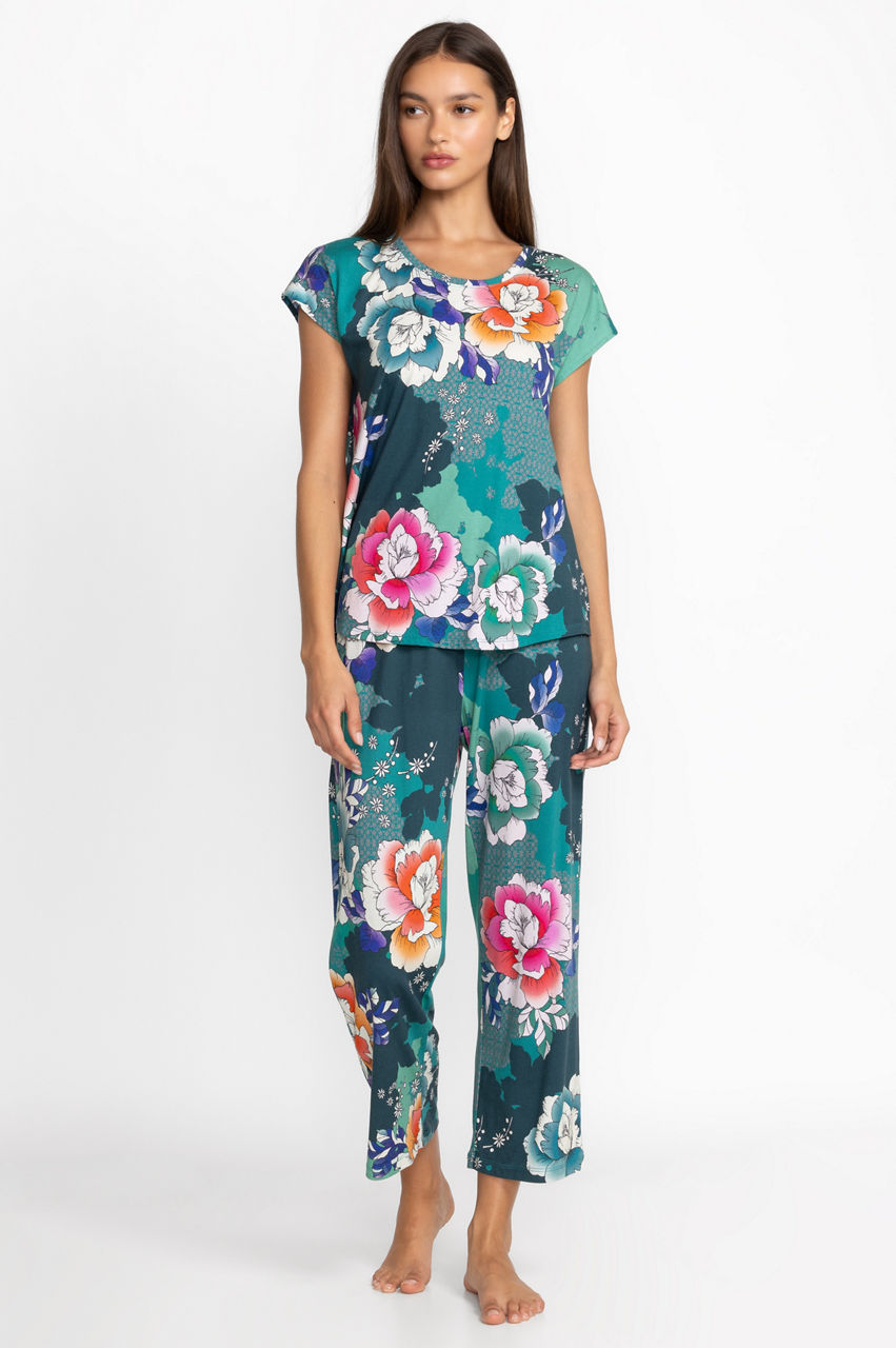 Designed for comfort and style, the Bobbie Crop Set is crafted from an incredibly soft cotton blend. Featuring a crewneck tee with short sleeves and coordinating cropped pants with a comfortable elastic waist, these pajamas are embellished with celestial icons for a dreamy look. Pair with a cozy robe and coordinating slippers for a night in.