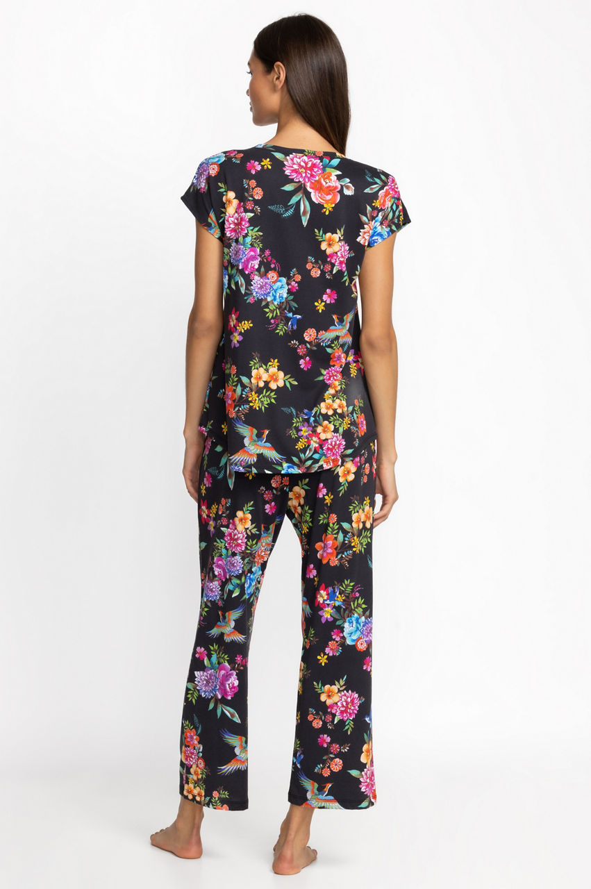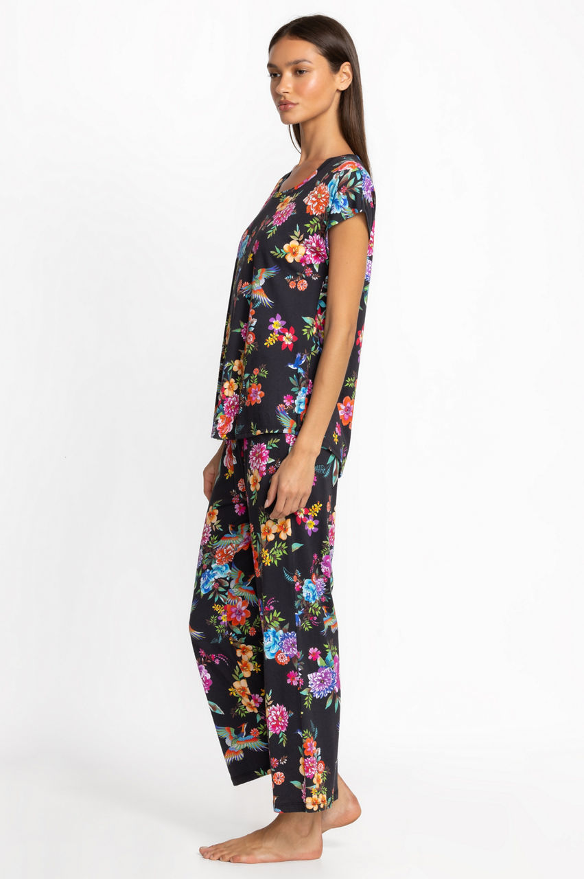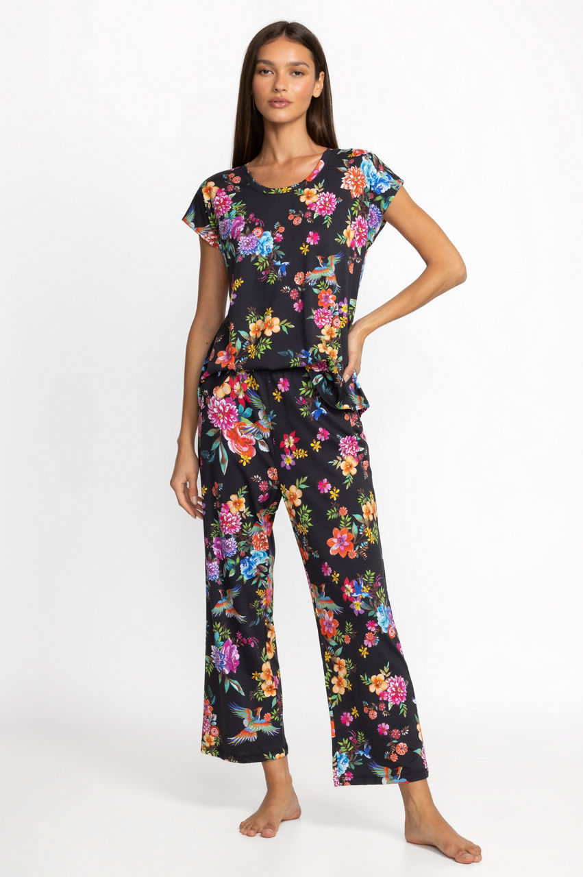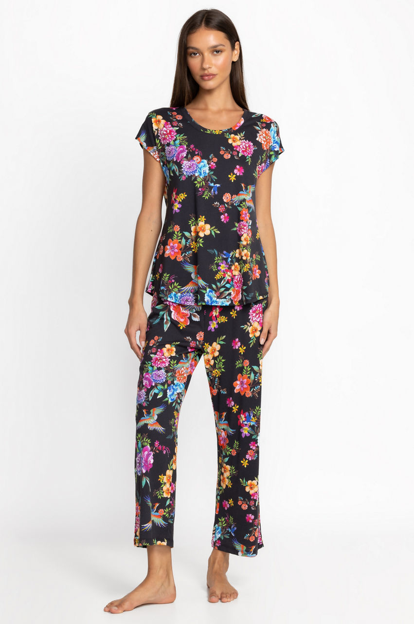 Designed for comfort and style, the Bobbie Crop Set is crafted from an incredibly soft cotton blend. Featuring a crewneck tee with short sleeves and coordinating cropped pants with a comfortable elastic waist, these pajamas are embellished with celestial icons for a dreamy look. Pair with a cozy robe and coordinating slippers for a night in.