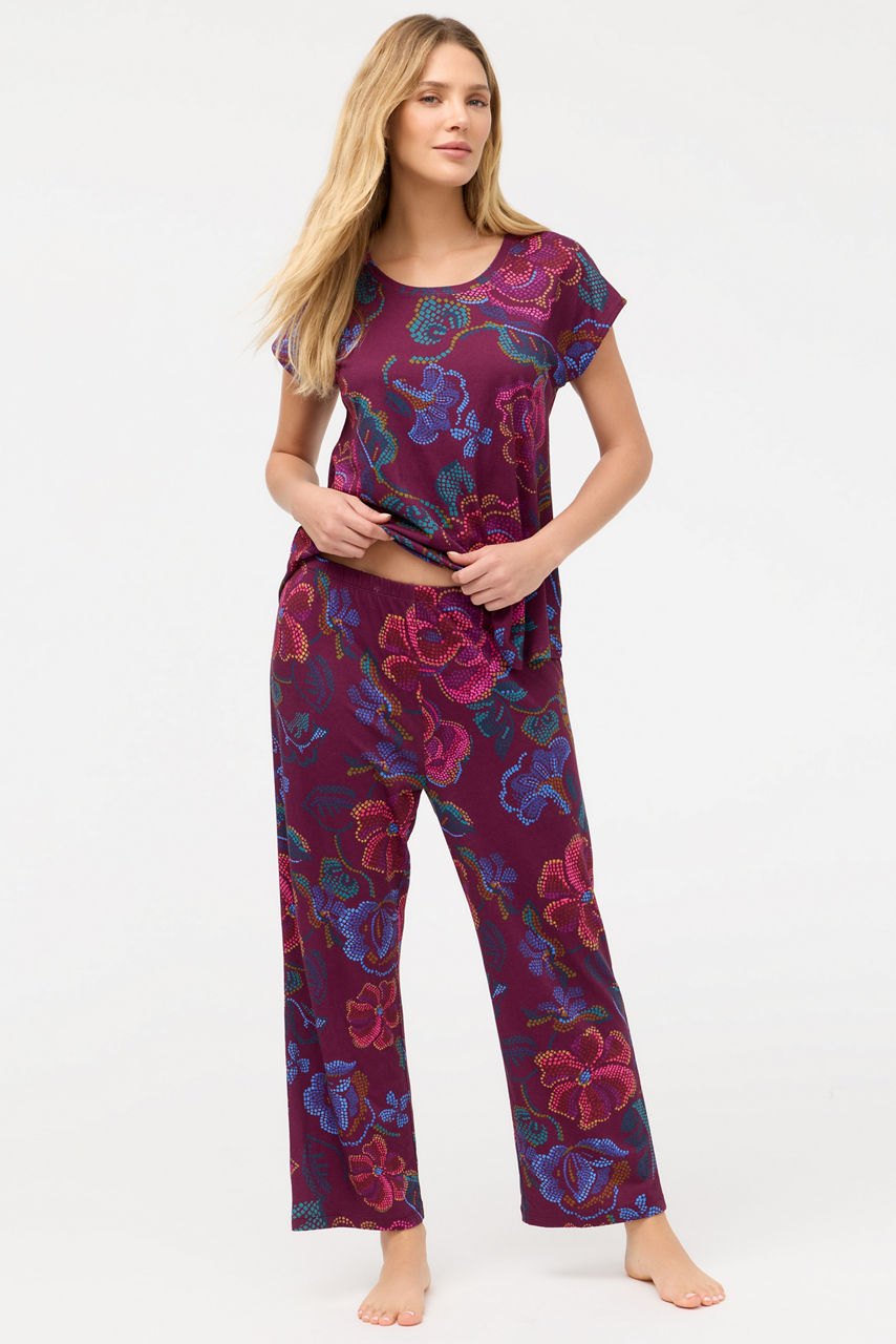 Designed for comfort and style, the Bobbie Crop Set is crafted from an incredibly soft cotton blend. Featuring a crewneck tee with short sleeves and coordinating cropped pants with a comfortable elastic waist, these pajamas are embellished with celestial icons for a dreamy look. Pair with a cozy robe and coordinating slippers for a night in.