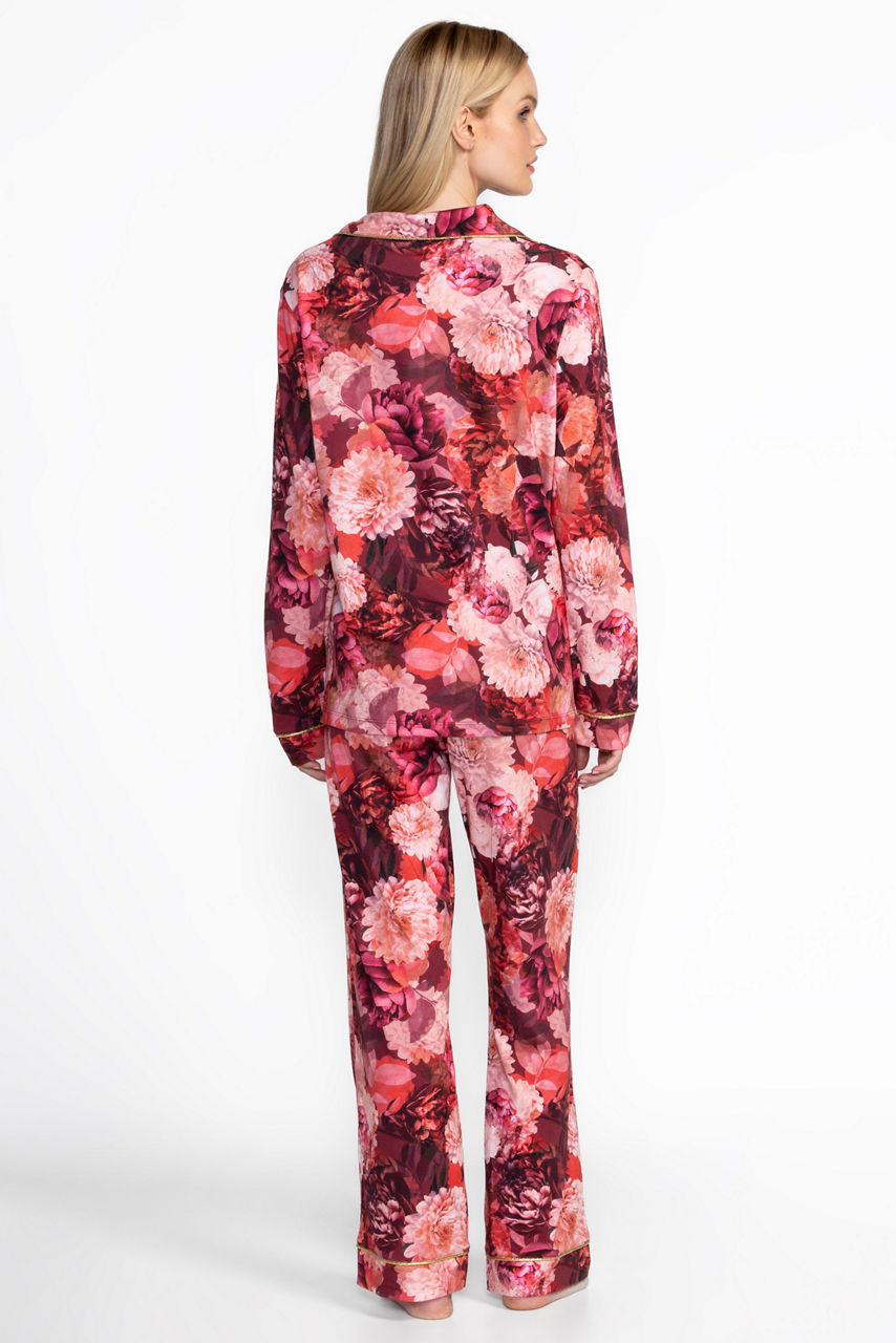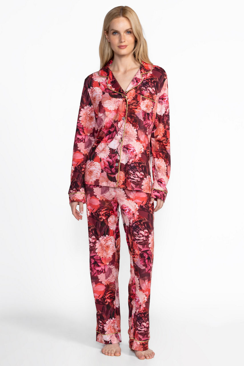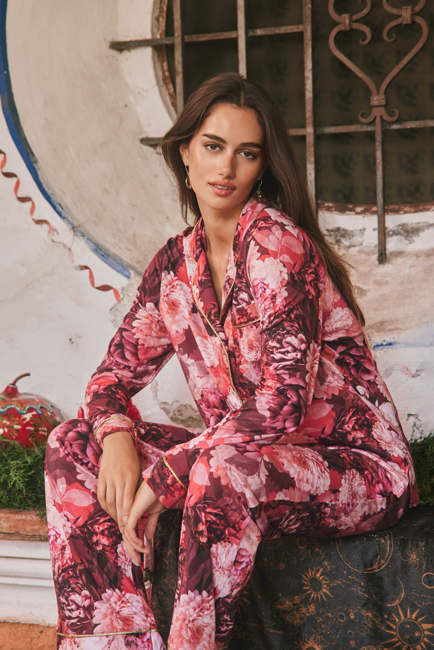 Designed for comfort and style, the Carly PJ Set is crafted from a soft cotton blend. Featuring a long sleeve button-front and coordinating wide-leg pants with a comfortable elastic waist, these pajamas are embellished with celestial icons for a dreamy look. Pair with a cozy robe and matching slippers for a night in.