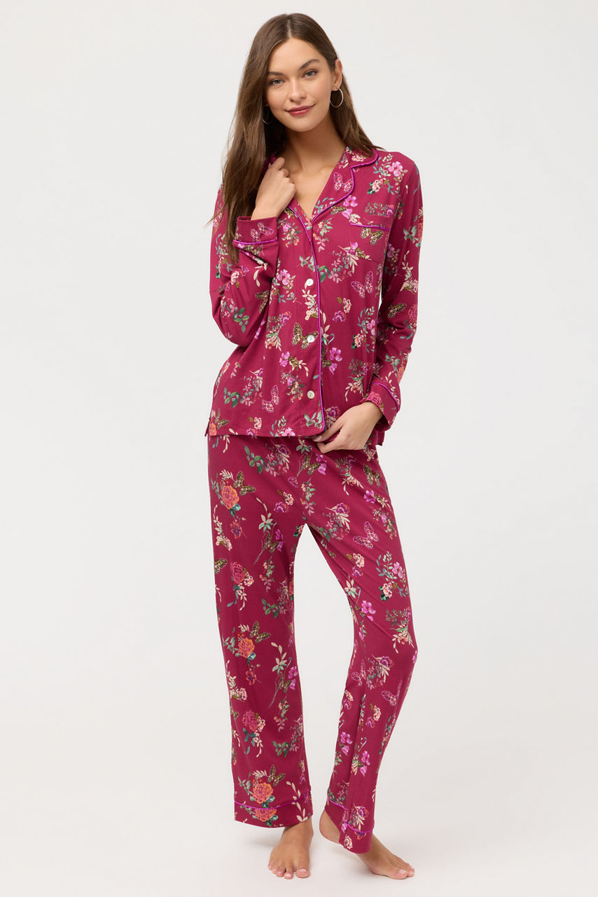 Designed for comfort and style, the Carly PJ Set is crafted from a soft cotton blend. Featuring a long sleeve button-front and coordinating relaxed fit pants with a comfortable elastic waist, these pajamas are embellished with celestial icons for a dreamy look. Pair with a cozy robe and matching slippers for a night in.