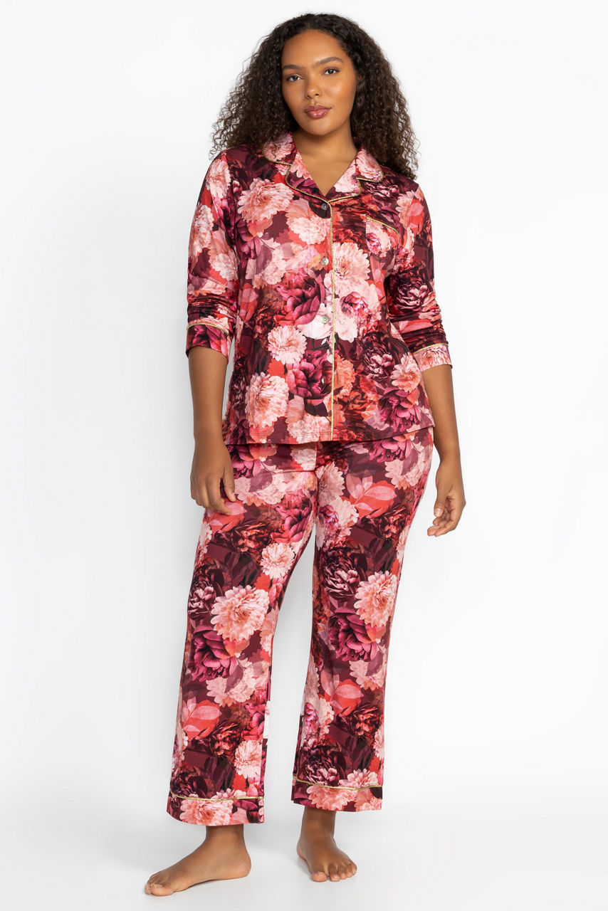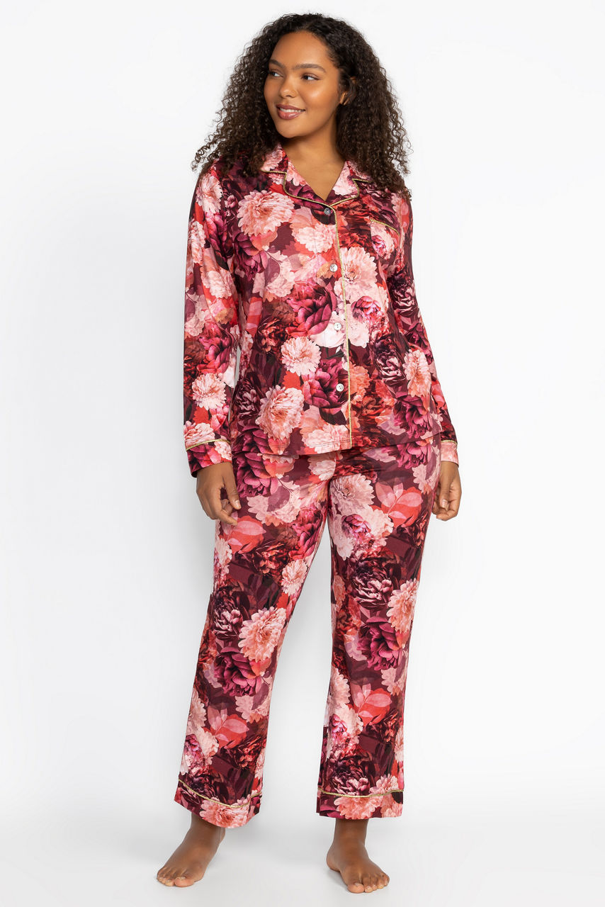 Designed for comfort and style, the Carly PJ Set is crafted from a soft cotton blend. Featuring a long sleeve button-front and coordinating relaxed fit pants with a comfortable elastic waist, these pajamas are finished in charming prints for feel-good lounging, day or night. Pair with a cozy robe and matching slippers for a night in.