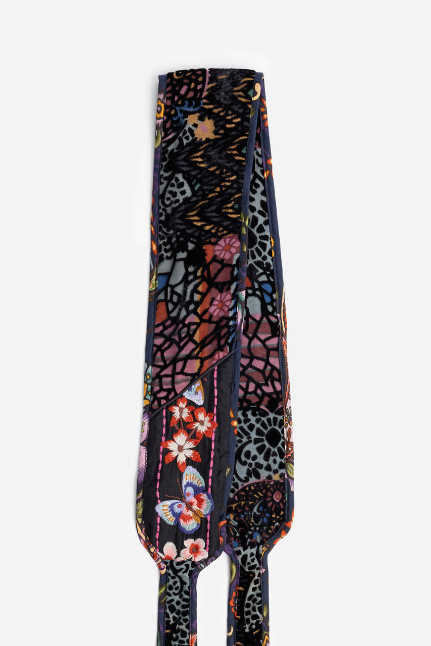 Crafted from a sumptuous silk blend, the Catherine Belt is embellished with bold patterns and colorful placement embroidery. Featuring a cummerbund-style front with ties at the back, this unique belt is finished with a subtle embroidered trim to add texture to the look. Wear atop a fit-and-flare dress to accentuate the silhouette with a splash of color.
