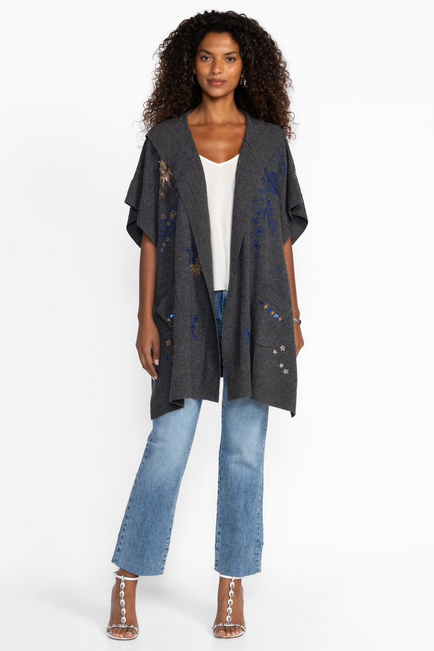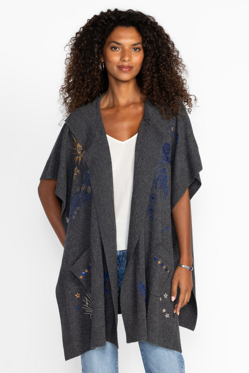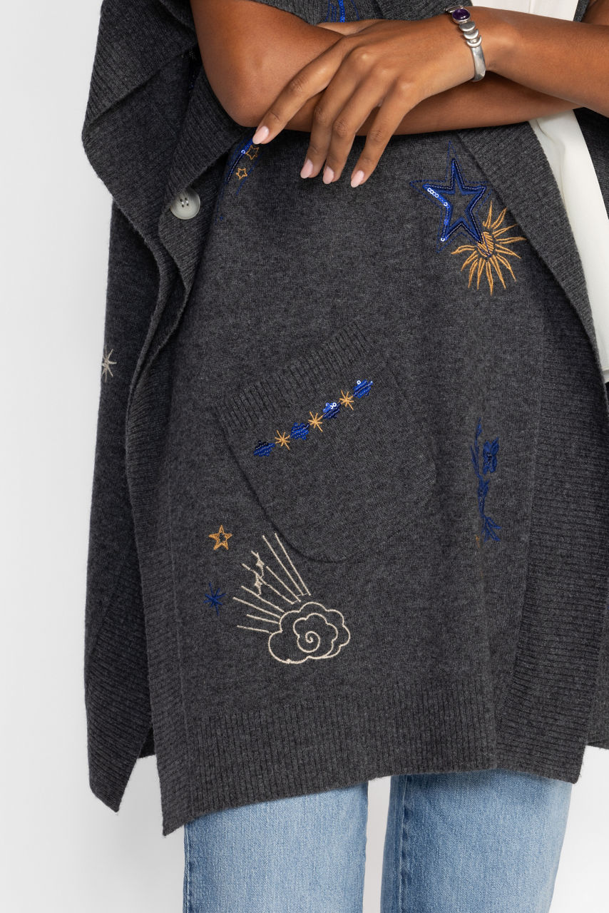 Crafted from a luxurious wool and cashmere blend, the Classic Cape adds a cozy layer of warmth for the colder season. Designed to drape easily across the shoulders, this cape features buttons at the underarms for a secure fit and is finished with intricate embroidered detailing for a splash of color. Layer over a classic turtleneck and pair with relaxed denim for an elevated casual look.