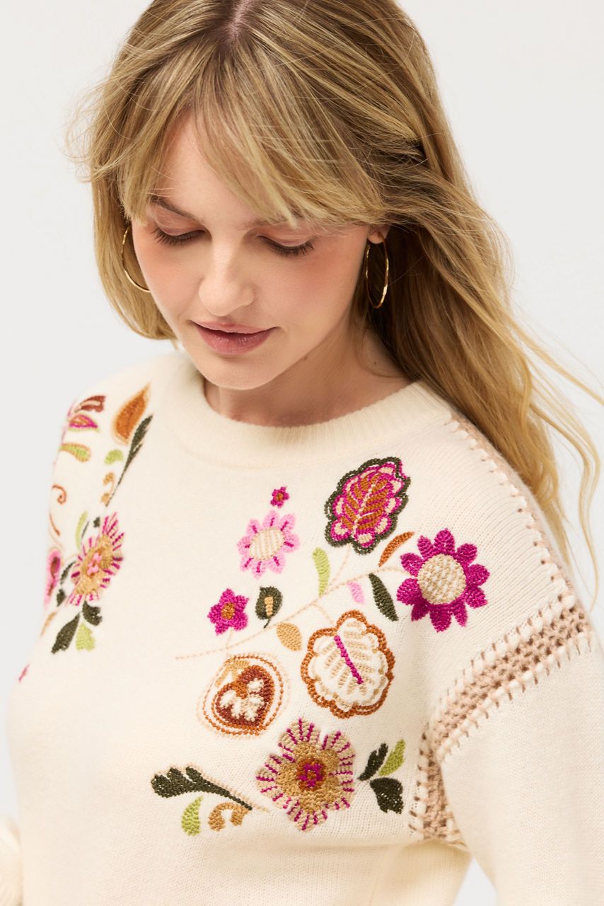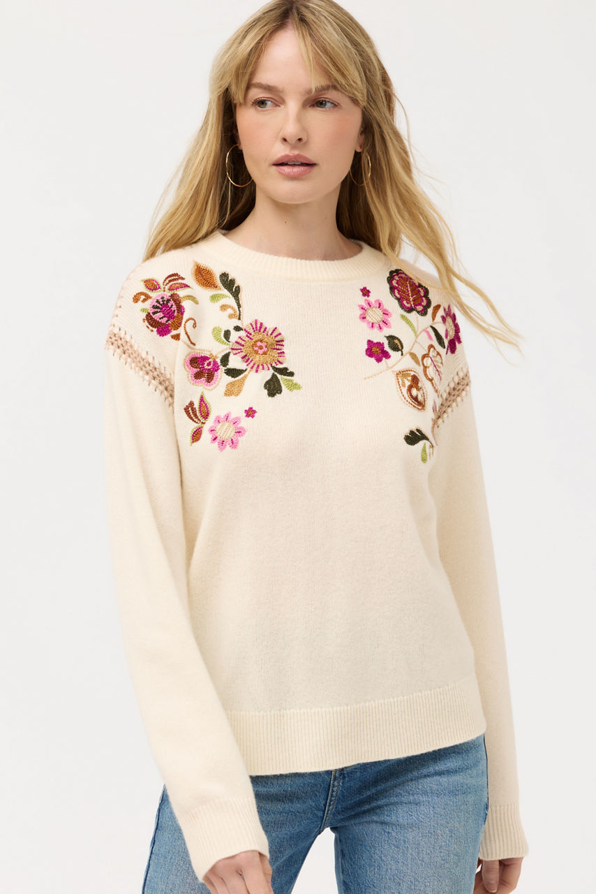The Crew Neck Whipstitch Pullover is crafted from a cozy wool and cashmere blend. Designed with a crew neckline, this pullover features whipstitch detailing at the shoulder and sleeve seams and is finished with intricate floral embroidered details for a splash of color. Pair with casual denim and at the Maxima Classic Beanie for a perfectly coordinated cool weather ensemble.