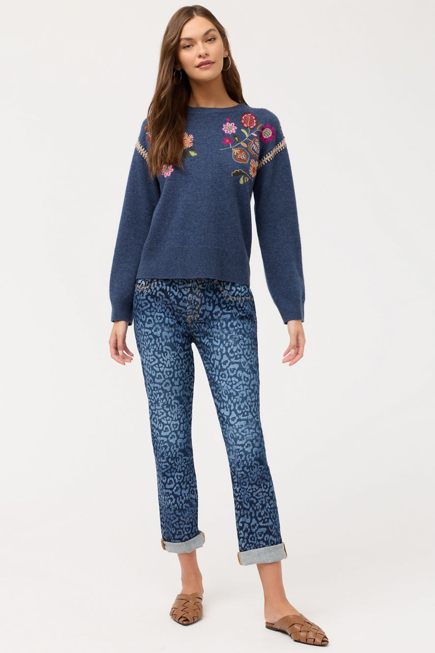 The Crew Neck Whipstitch Pullover is crafted from a cozy wool and cashmere blend. Designed with a crew neckline, this pullover features whipstitch detailing at the shoulder and sleeve seams and is finished with intricate floral embroidered details for a splash of color. Pair with casual denim and at the Maxima Classic Beanie for a perfectly coordinated cool weather ensemble.