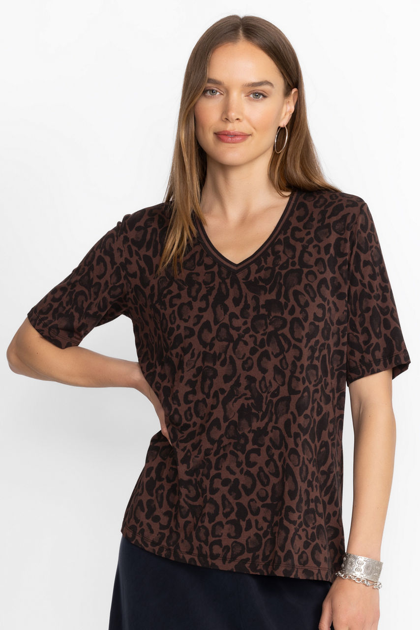 Crafted from a soft lightweight material with a hint of stretch, the Janie Favorite 3/4 Sleeve V-Neck Tee is a basic wardrobe necessity. Featuring a V-neckline and 3/4 sleeves, this relaxed-fit tee is finished with an eye-catching pattern. Pair with a denim skirt and casual sandals for an easy weekend look.