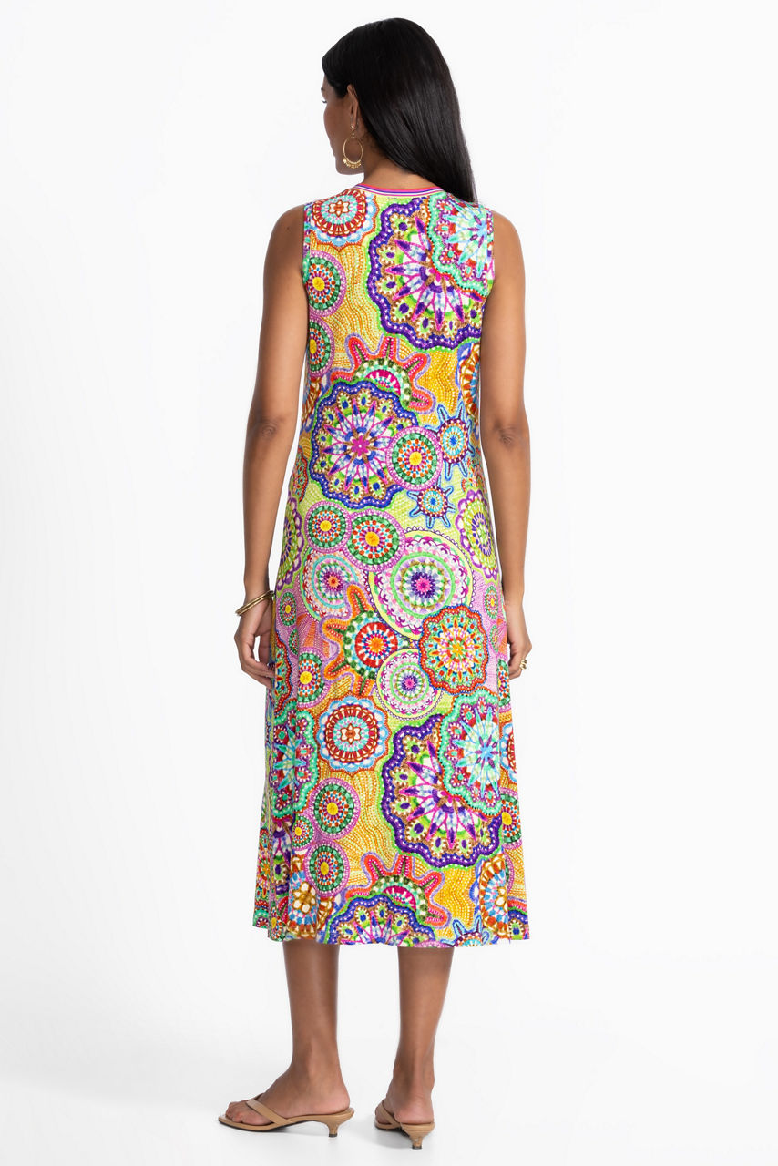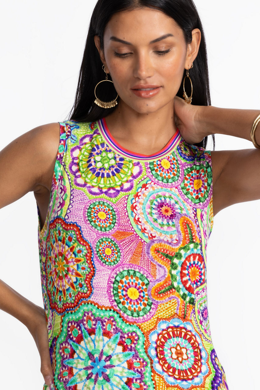 Expertly embellished with a colorful retro-inspired pattern, the Janie Favorite Crew Neck Tank Dress is equal parts vibrant and bold. Crafted with a crew neckline and a fitted bodice, this sleeveless tank dress is finished with a relaxed A-line silhouette. Pair with easy slides and bold jewelry for a casual daytime event.