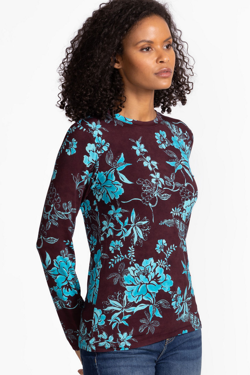 Crafted from a lightweight fabric with a hint of stretch, the Janie Favorite Fitted Long Sleeve Tee is embellished with vibrant jade florals. Designed with a crew neckline and long sleeves, this tee is finished with a fitted silhouette. Pair with wide-leg trouser jeans and wedge heels for a fresh casual look.