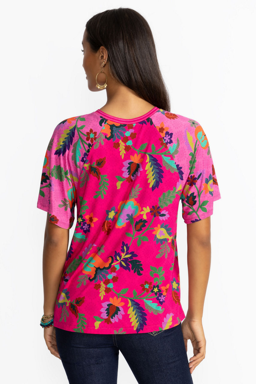 Washed in rich color and a bold floral pattern, the Janie Favorite Flutter Raglan Sleeve Top adds a pop of color to any look. Designed with a crew neckline and flutter sleeves, this Raglan style top offers a loose fit that drapes easily across the body. Pair with skinny jeans and trendy ankle boots for a fun girls' night out.