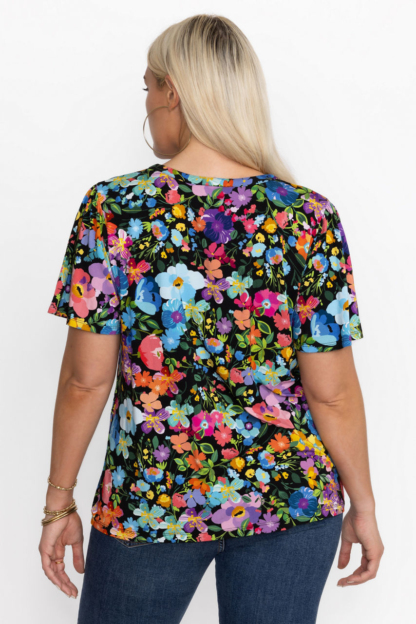 Crafted from a lightweight fabric with a hint of stretch, the Wild Bloom Flutter Sleeve Henley is defined by bold color and intricate pattern. Featuring a rounded Henley neckline finished with a vibrant striped border, this relaxed fit top is finished with short sleeves and a straight hemline. Pair with black shorts and leather sandals for a weekend look brimming with style.
