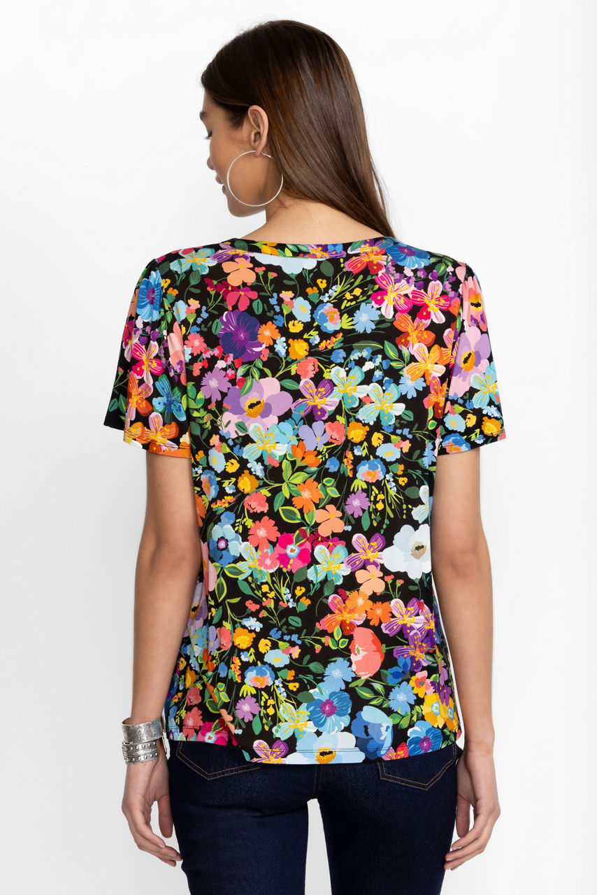 Crafted from a lightweight fabric with a hint of stretch, the Wild Bloom Flutter Sleeve Henley is defined by bold color and intricate pattern. Featuring a rounded Henley neckline finished with a vibrant striped border, this relaxed fit top is finished with short sleeves and a straight hemline. Pair with black shorts and leather sandals for a weekend look brimming with style.
