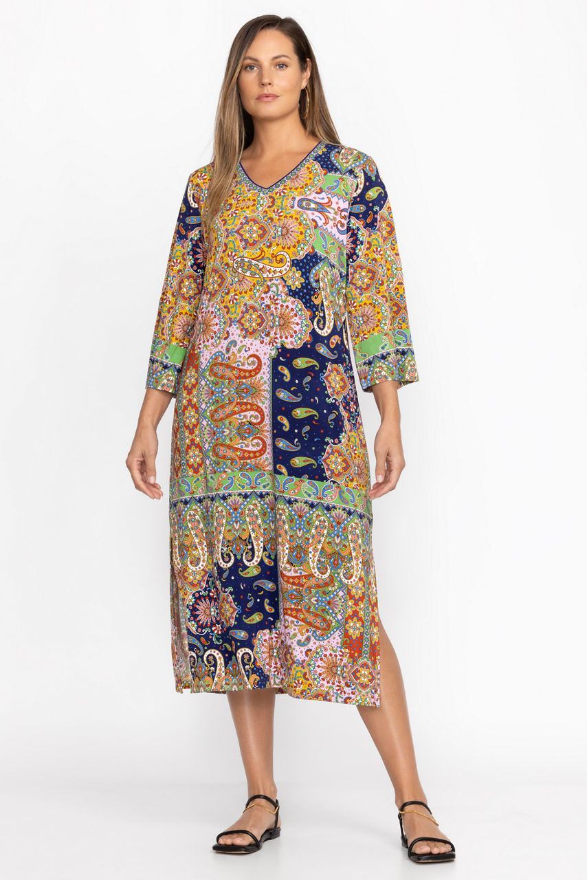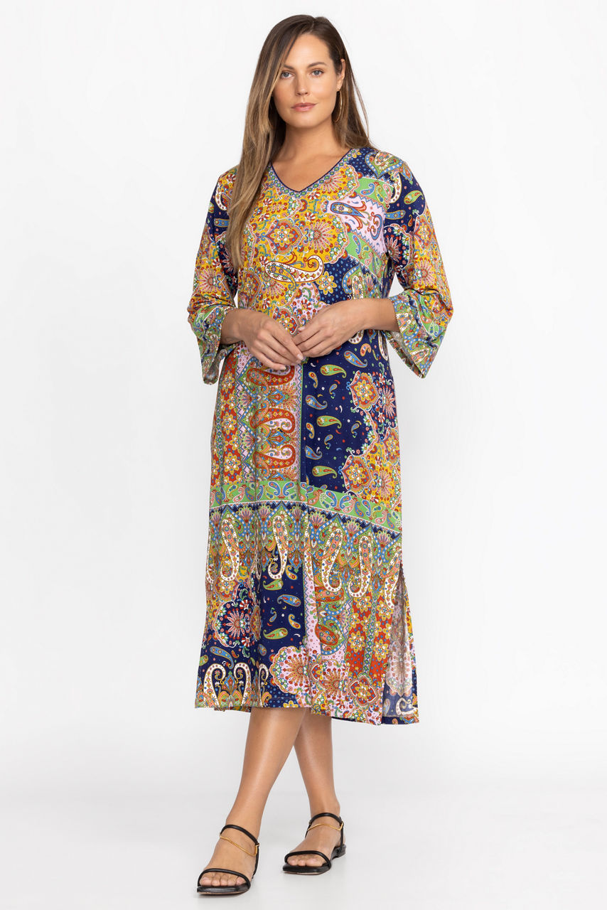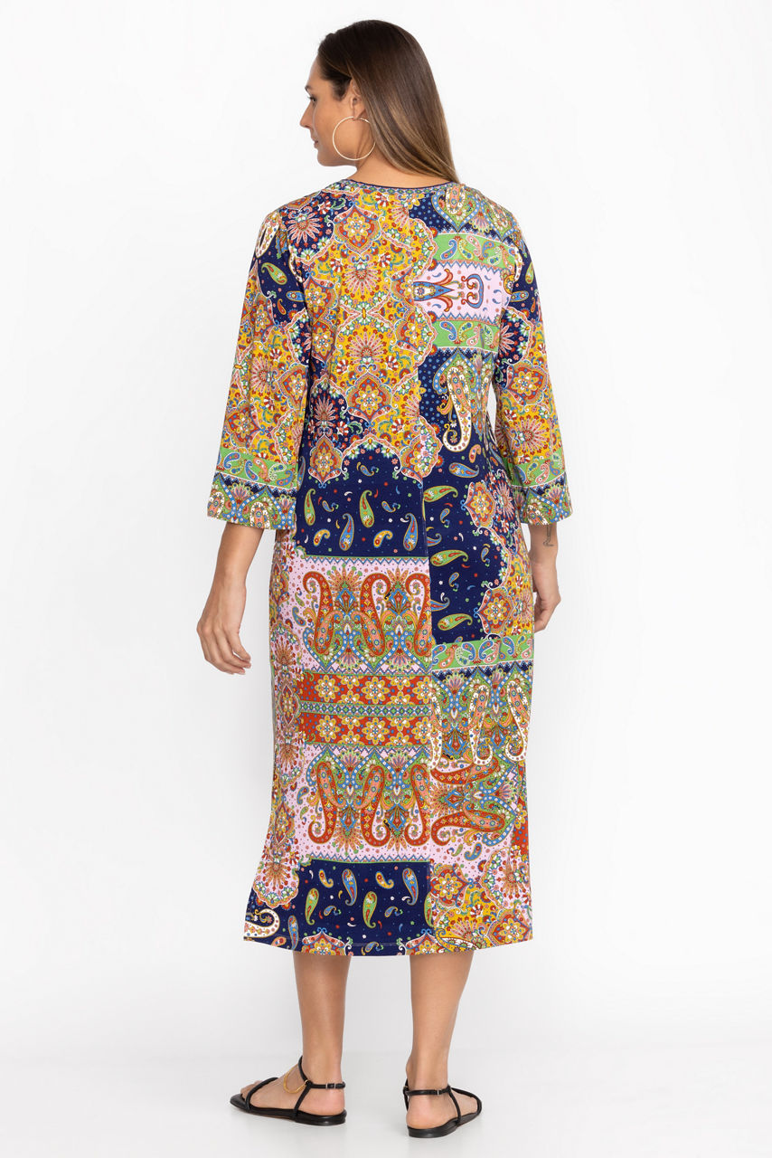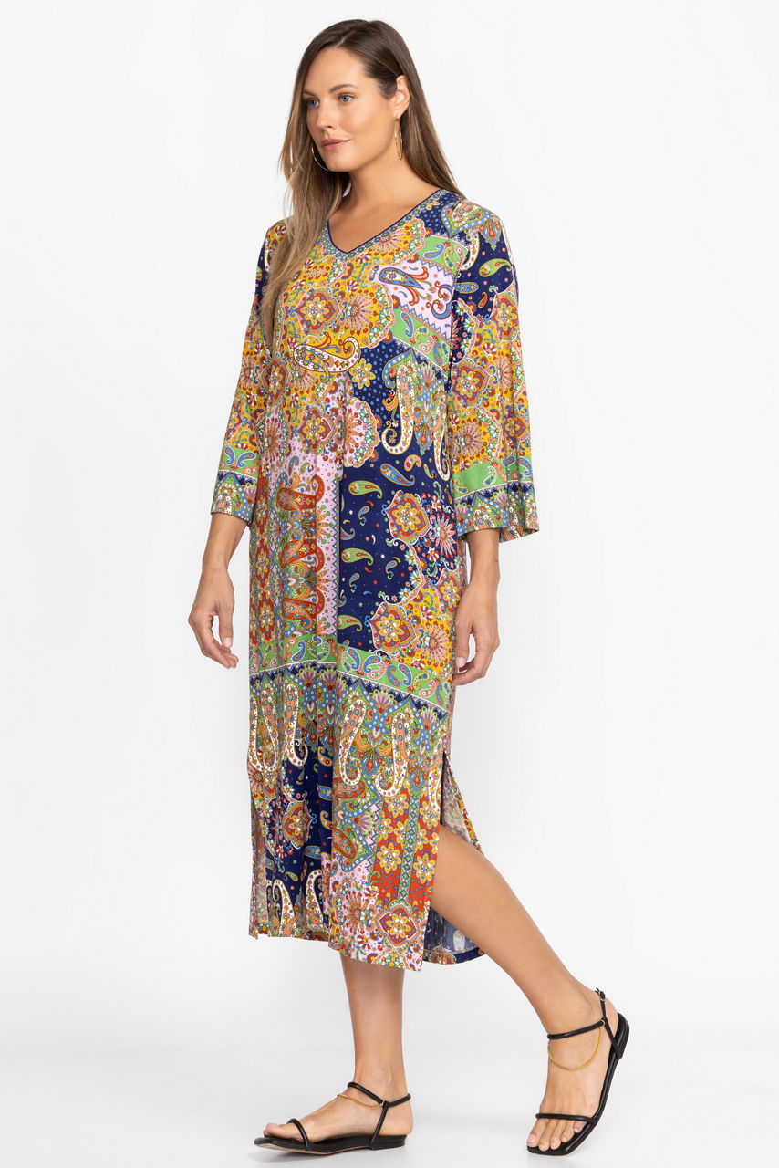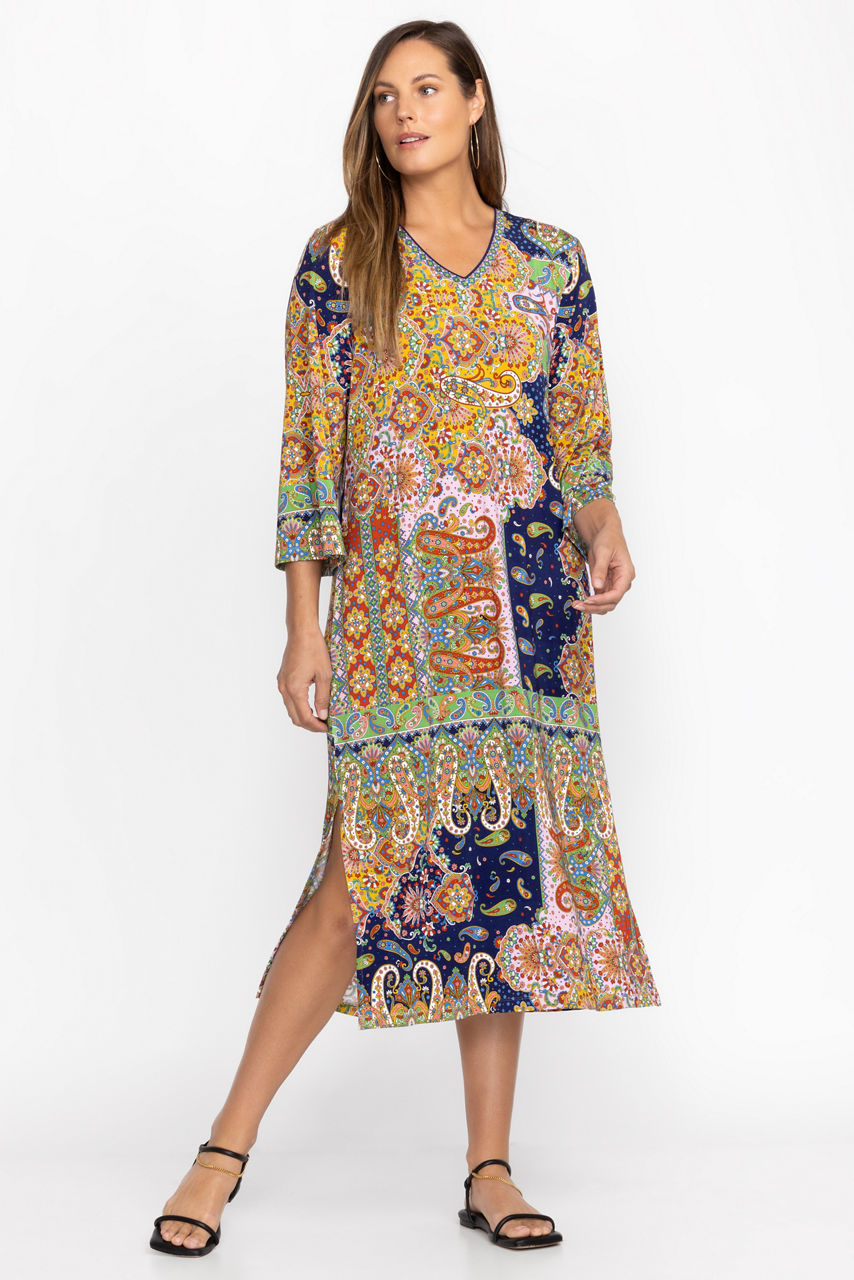 Offering a beautiful kaleidoscope of pattern, the Breamar Night Kimono Sleeve Tee Dress is an easy casual option with a lot of flair. Featuring and A-line silhouette and open V-neckline, this effortless, easy-care dress is finished with flowing, kimono-style sleeves. Pair with stylish espadrille sandals for brunch with friends.