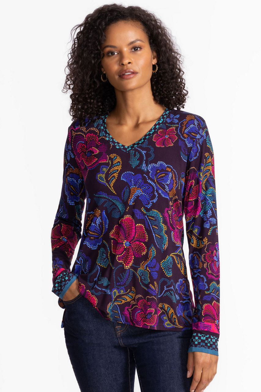 The Janie Favorite Long Sleeve V-Neck Swing Tee is a chic alternative to the classic t-shirt. Crafted from a comfortable blend fabric with a hint of stretch, this tee features a feminine A-line silhouette. Pair with skinny jeans and ankle boots for a chic casual look.