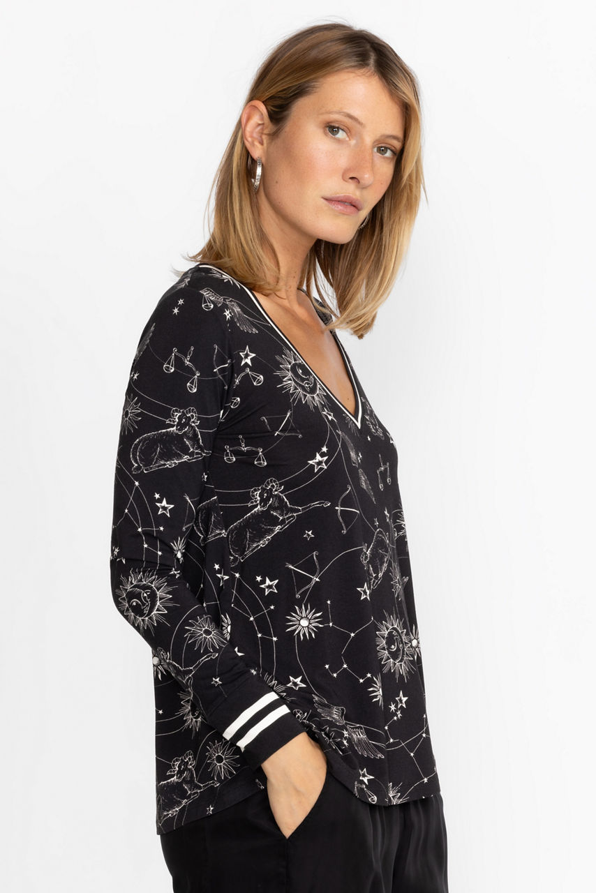 The Janie Favorite Long Sleeve V-Neck Swing Tee is a chic alternative to the classic t-shirt. Crafted from a comfortable blend fabric with a hint of stretch, this tee features a feminine A-line silhouette. Pair with skinny jeans and ankle boots for a chic casual look.