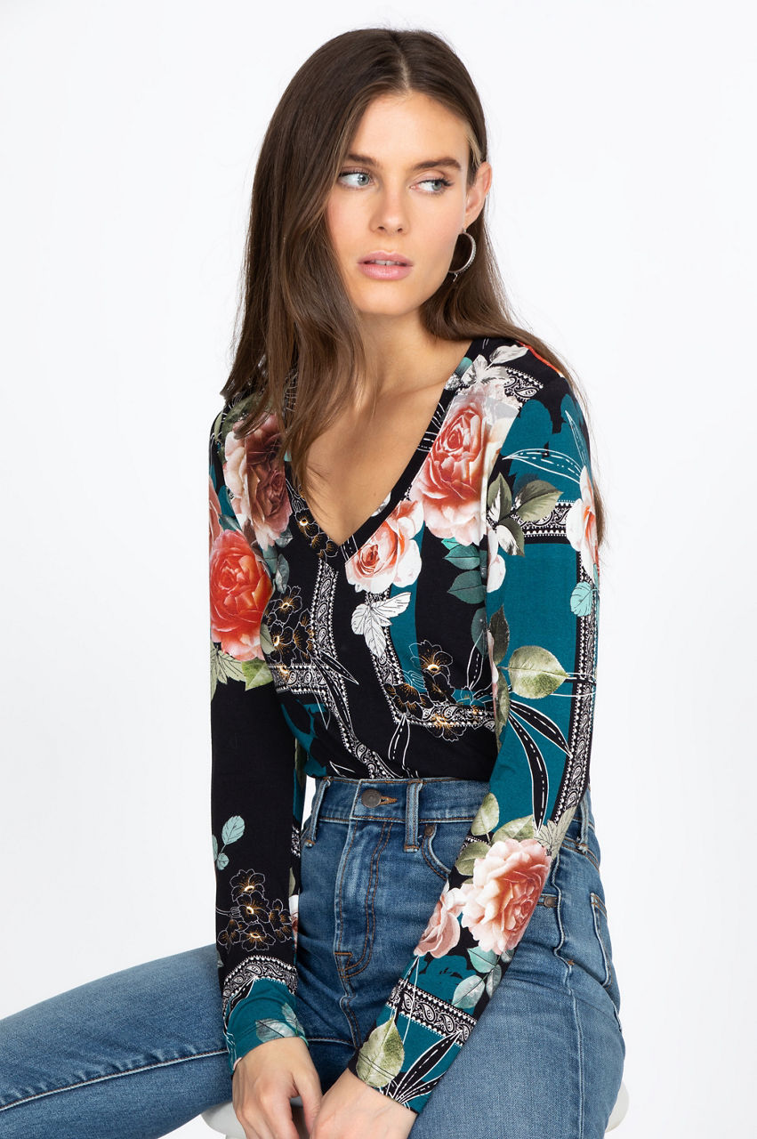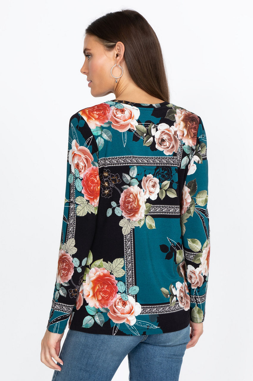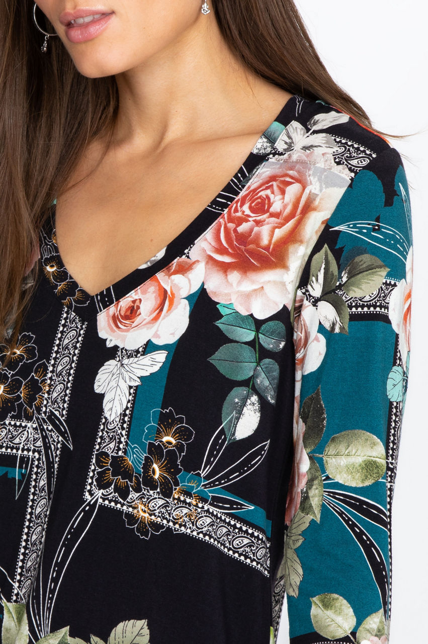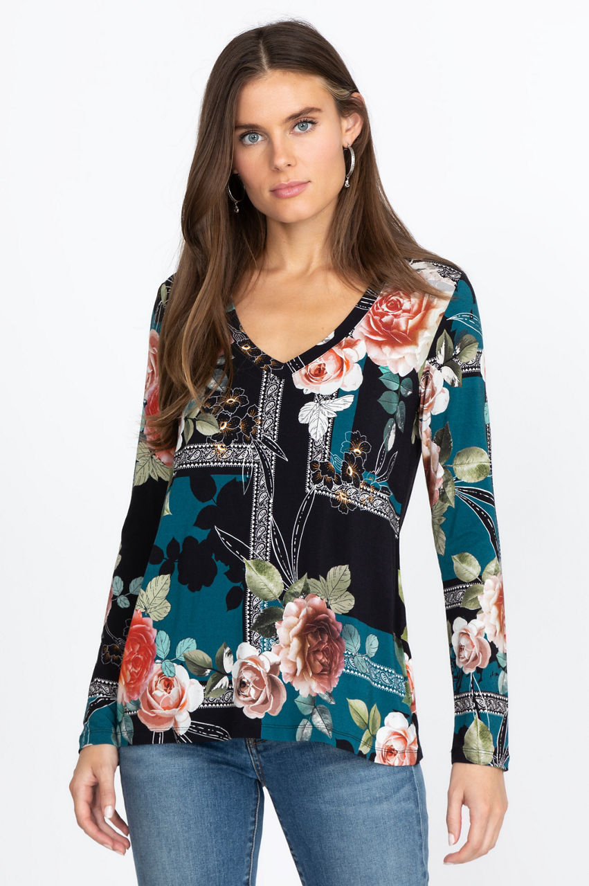 Crafted from a versatile and comfortable blend fabric, the Janie Favorite Long Sleeve V-Neck Tee is an effortless style for cooler days. Featuring an open V-neckline and straight hem, this versatile tee is destined to become a go-to in your wardrobe. Pair with a denim skirt and cozy cardigan for winning casual look.