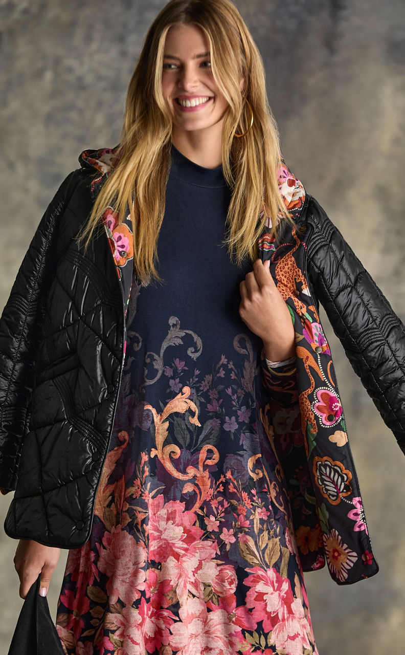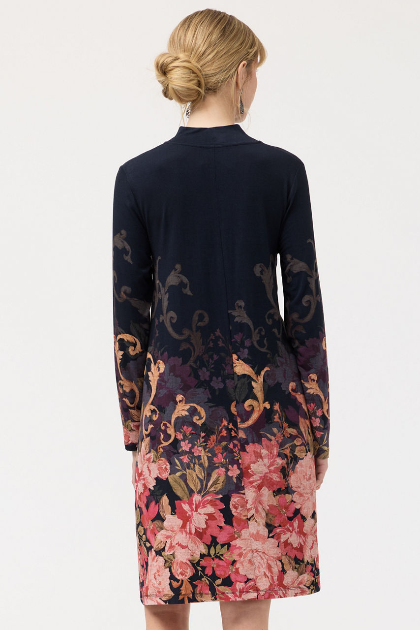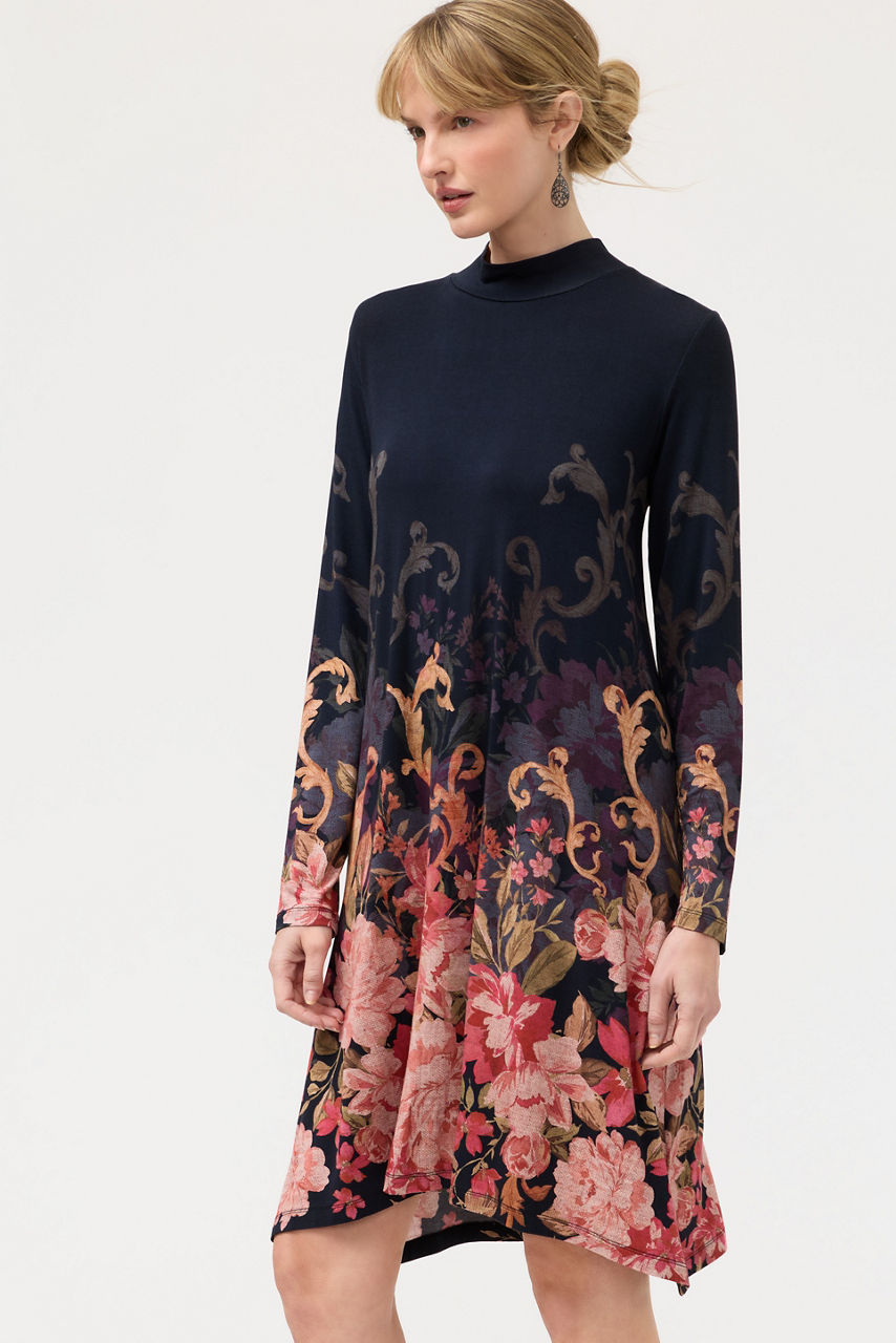Adorned with an elegant floral pattern in hues of pink, the Janie Favorite Mock Neck Swing Dress is a perfect blend of casual comfort and elevated style. Designed from a lightweight breathable fabric, this mock neck dress offers a classic A-line silhouette and is finished with a handkerchief hemline. Pair with smart flats and coordinating crossbody bag for a fresh casual look with lots of style.