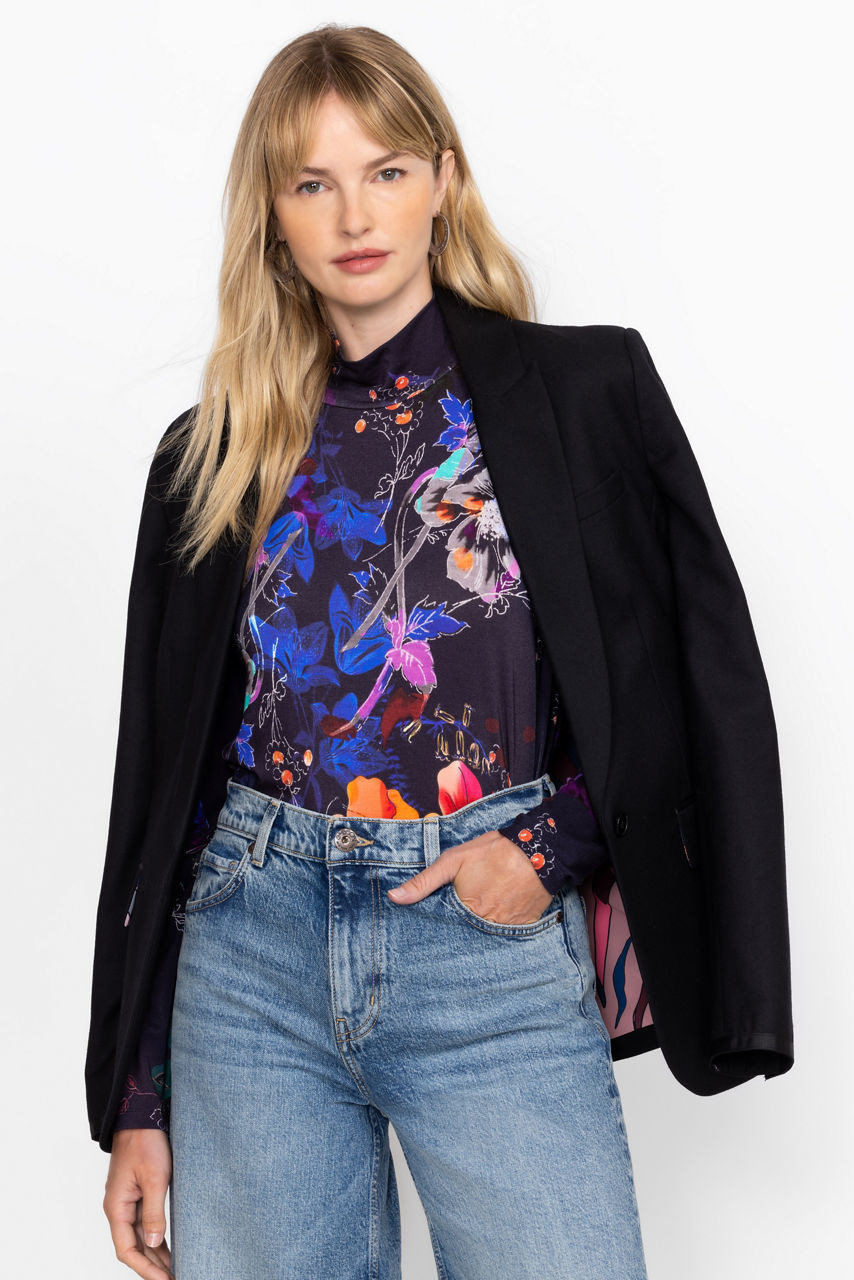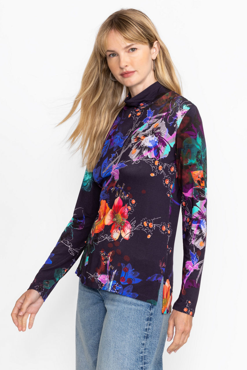 Crafted from a lightweight fabric with a hint of stretch, the Janie Favorite Mock Neck is a fresh twist on a classic wardrobe staple. Featuring a mock neck and long sleeves, this top is finished with a fitted bodice and side slits at the hem. Pair with dark wash denim and a sleek coordinating blazer for a polished weekend look.
