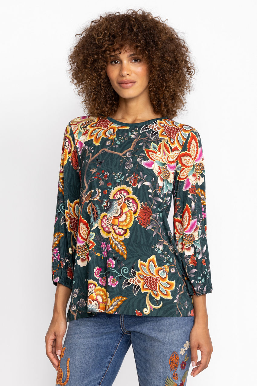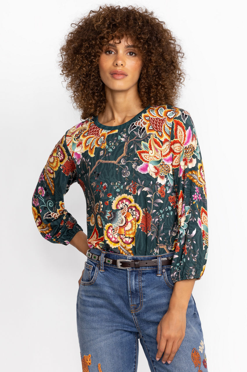 Designed from a lightweight material, the Orizaba Puff Sleeve Top conveys a feeling a timeless romance thanks to its bouquet of fresh blooms. This top features a round neck, long puff sleeves with elastic at the sleeve openings, and vintage flowers in orange tones. Wear this top with jeans or dress up with tailored pants and heels.