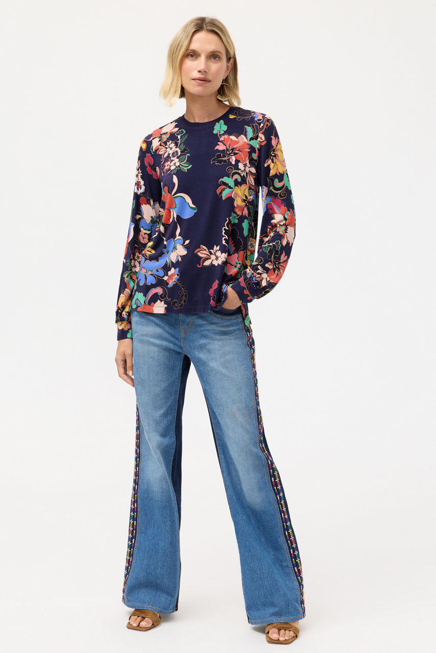 Thoughtfully embellished with a series of vibrant blooms, the Janie Favorite Puff Sleeve Mock Neck offers both casual comfort and elevated style. Designed with a mock neck and gently puffed sleeves, this colorful blouse is finished with a straight hemline. Pair with a skirt and wedge heels for a girls' night out.