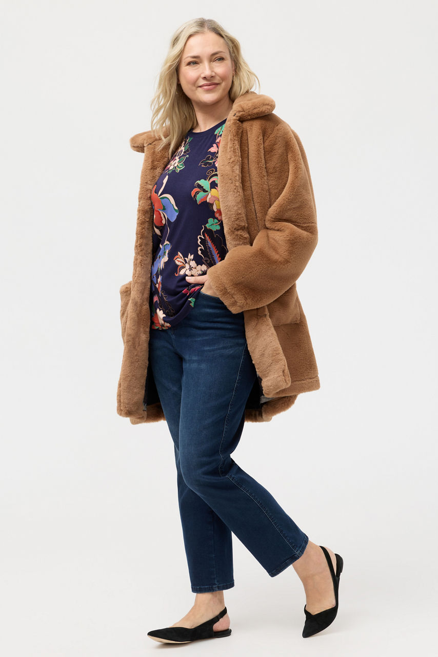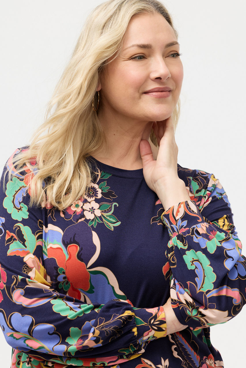 Thoughtfully embellished with a series of vibrant blooms, the Janie Favorite Puff Sleeve Mock Neck offers both casual comfort and elevated style. Designed with a mock neck and gently puffed sleeves, this colorful blouse is finished with a straight hemline. Pair with a skirt and wedge heels for a girls' night out.