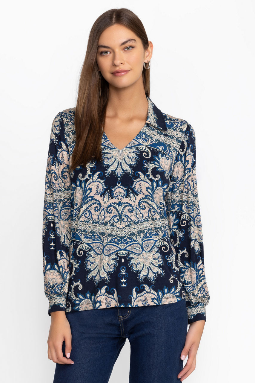 Crafted from a lightweight fabric with a hint of stretch, the Janie Favorite Puff Sleeve Polo offers a feminine twist on a wardrobe classic. Featuring a traditional V-neck polo collar paired with gently puffed lantern sleeves, this unique top is finished with an ornate, eye-catching design. Pair with a tennis skirt and fashion sneakers for a day at the sports club.