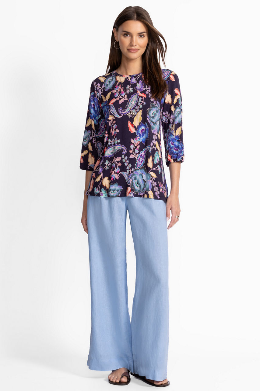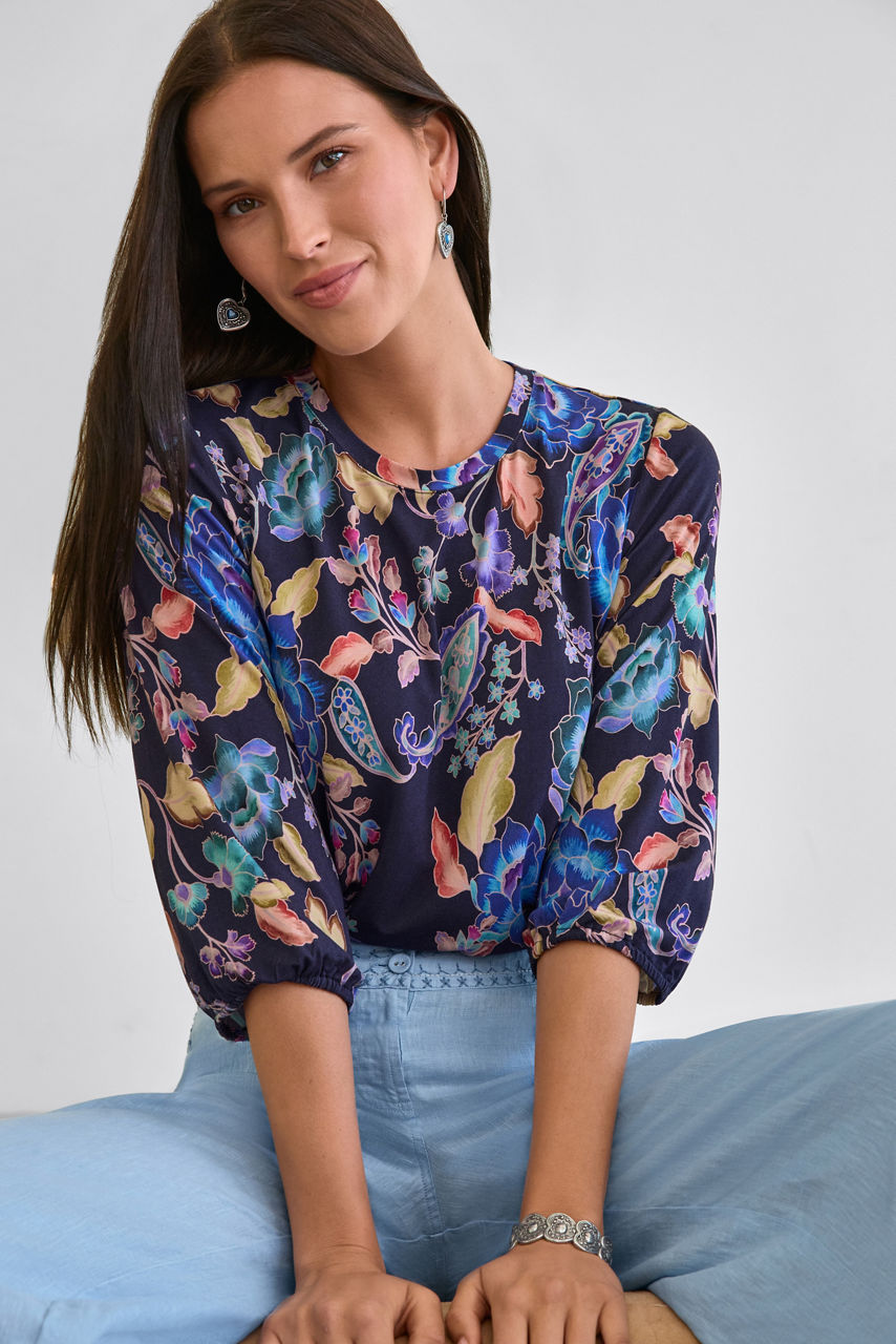 Boldly embellished with a vibrant paisley pattern, the Janie Favorite Puff Sleeve Top offers a fresh take on a classic tee. Designed with a crew neckline and gently puffed elbow-length sleeves, this incredibly soft top is finished with a straight silhouette. Pair with relaxed-fit denim and fashion sneakers for a day out running errands.