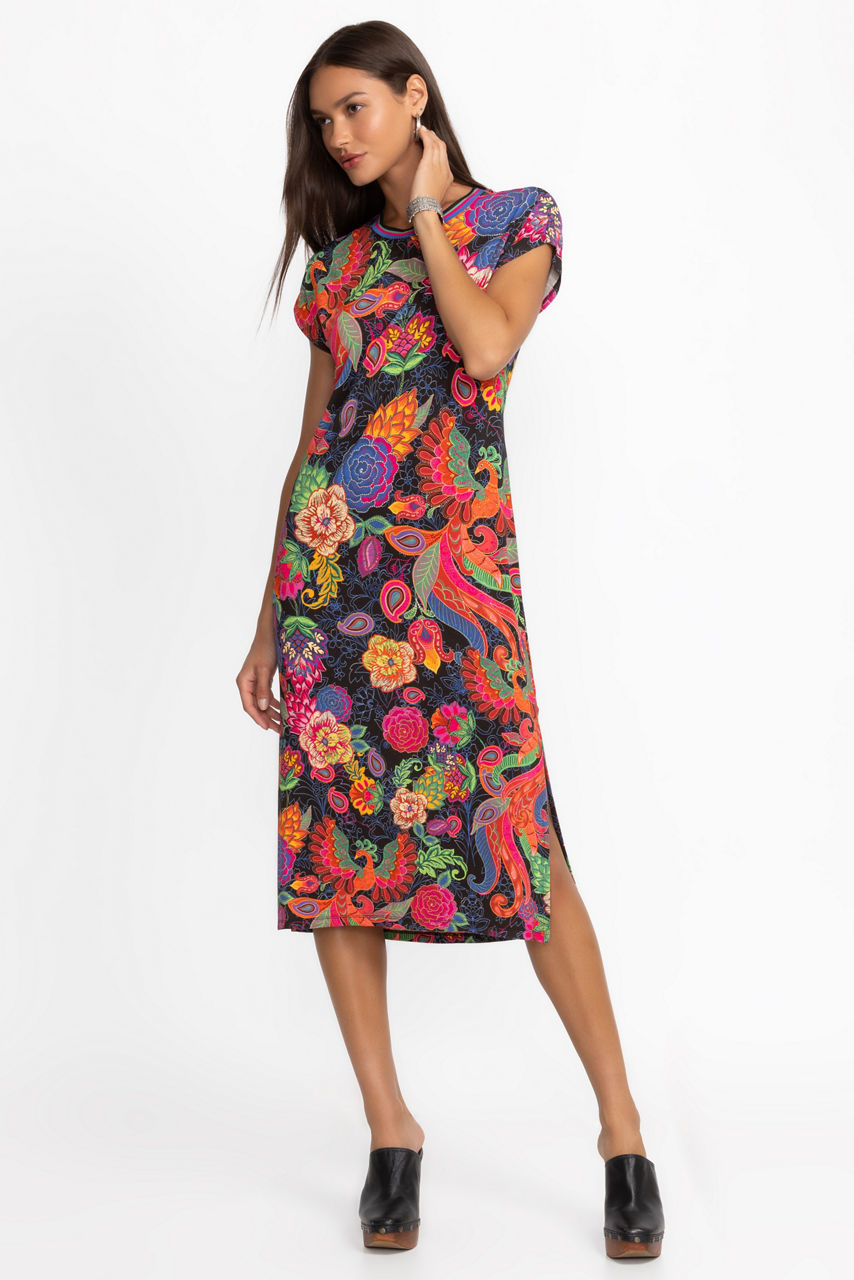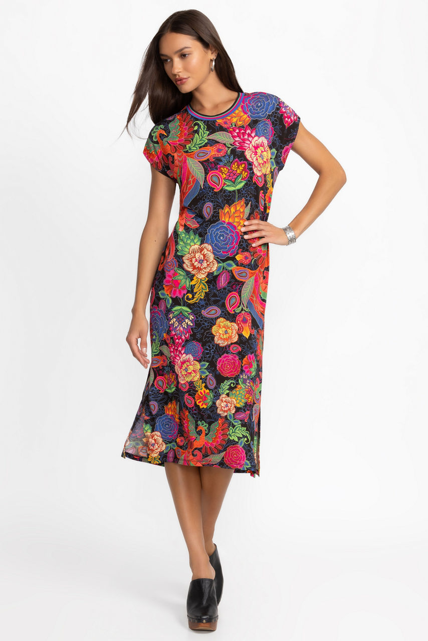Vibrant and bold, the Janie Favorite Relaxed Knit Dress is crafted from a lightweight breathable fabric with a hint of stretch. Featuring a crew neckline and Dolman sleeves, this A-line dress is finished with slits at the sides for a relaxed fit. Pair with fashion sneakers and a trendy cross-body bag for a day of sightseeing.