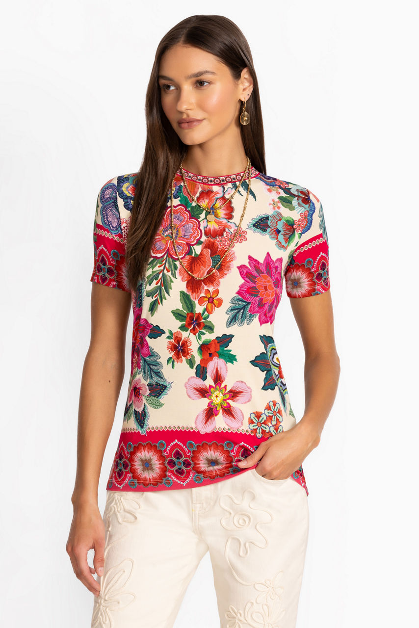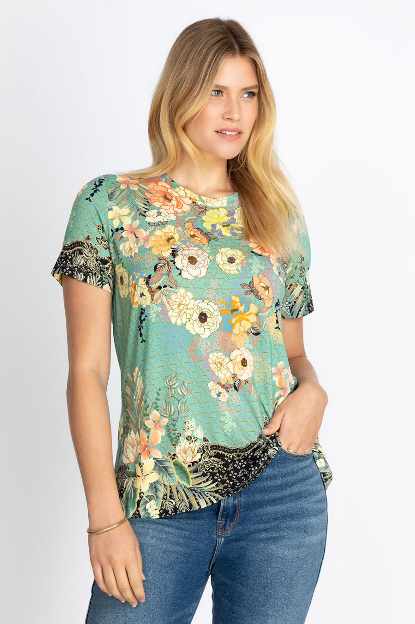 Pairing casual comfort with elevated style, the Janie Favorite Short Sleeve Crew Neck Tee is an all-season essential. Crafted from a unique blend fabric with a hint of stretch, this tee features a straight-cut hem and rounded neckline. Pair with relaxed fit denim and casual flats for a polished weekend look.