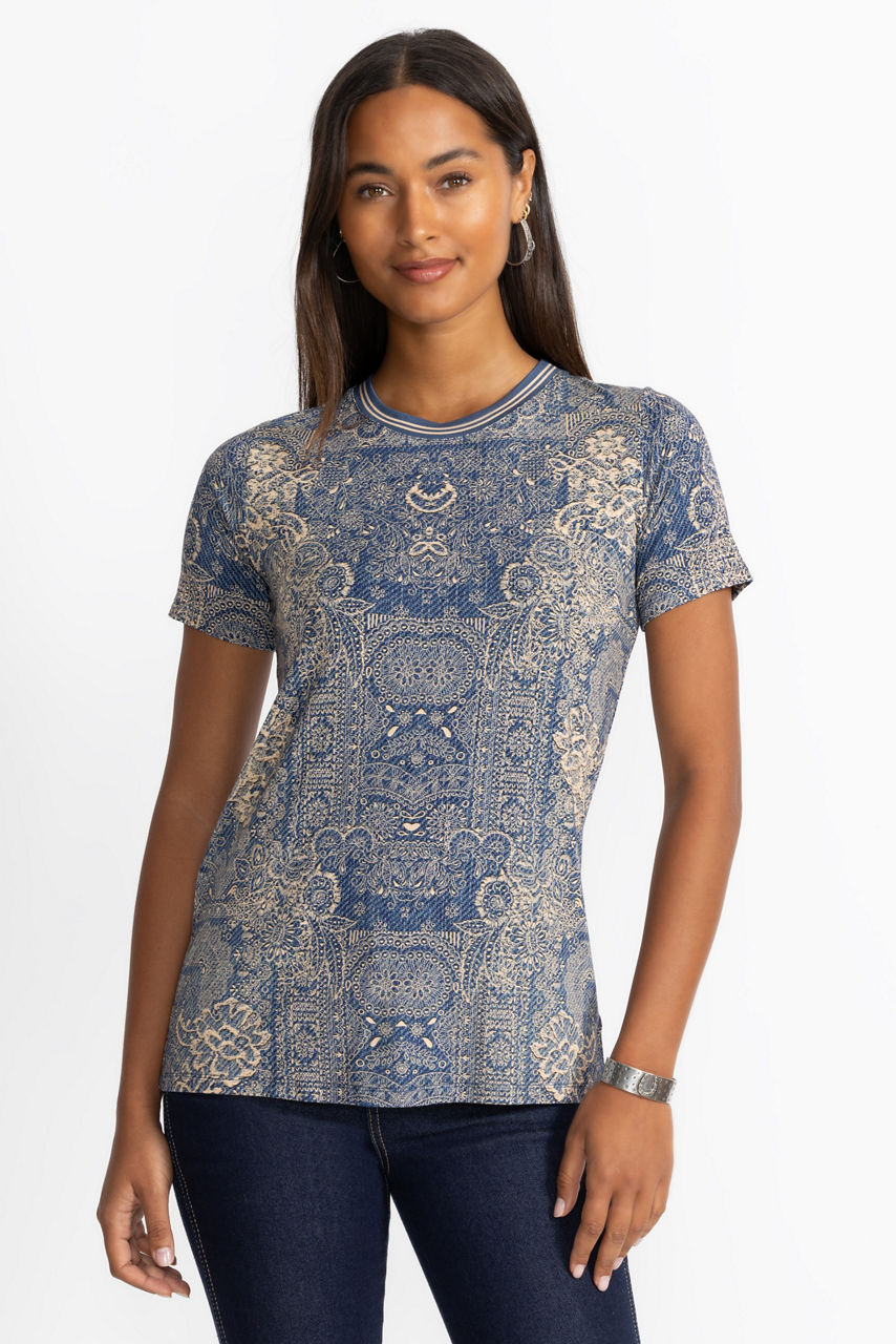 Pairing casual comfort with elevated style, the Janie Favorite Short Sleeve Crew Neck Tee is an all-season essential. Crafted from a unique blend fabric with a hint of stretch, this tee features a straight-cut hem and rounded neckline. Pair with relaxed fit denim and casual flats for a polished weekend look.