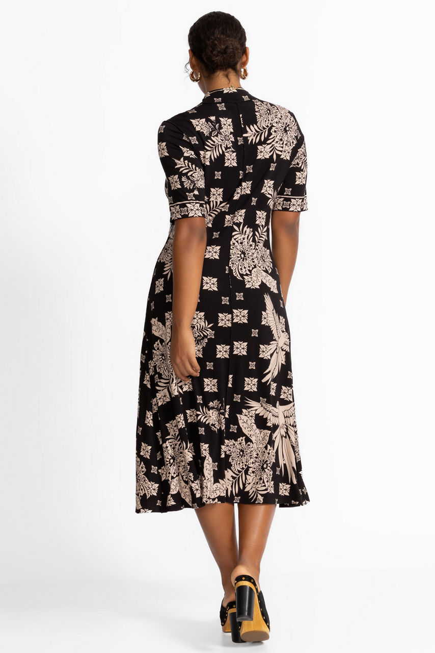 THE JANIE FAVORITE SHORT SLEEVE SEAMED MOCK NECK DRESS