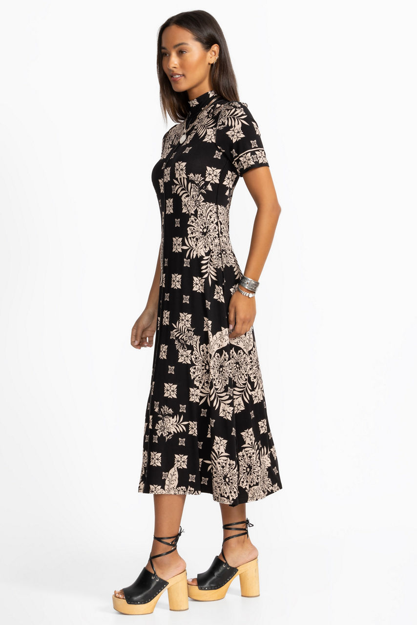 THE JANIE FAVORITE SHORT SLEEVE SEAMED MOCK NECK DRESS