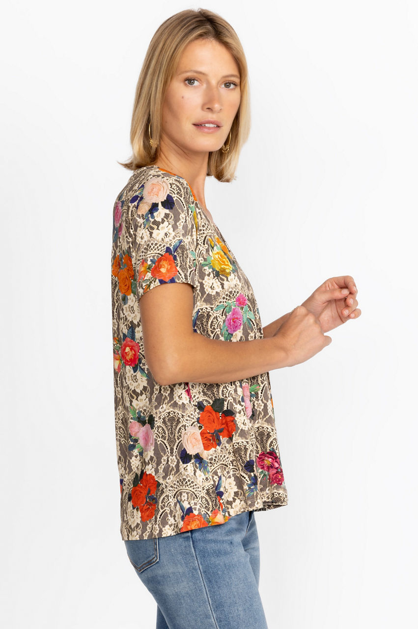 A charming take on the classic t-shirt, the Janie Favorite Short Sleeve V-Neck Swing Tee is an effortless addition to your style repertoire. Created from a comfortable blend fabric with a hint of stretch, this tee is a breezy everyday look. Wear it with relaxed chinos and slip-on sandals for a fresh casual ensemble.
