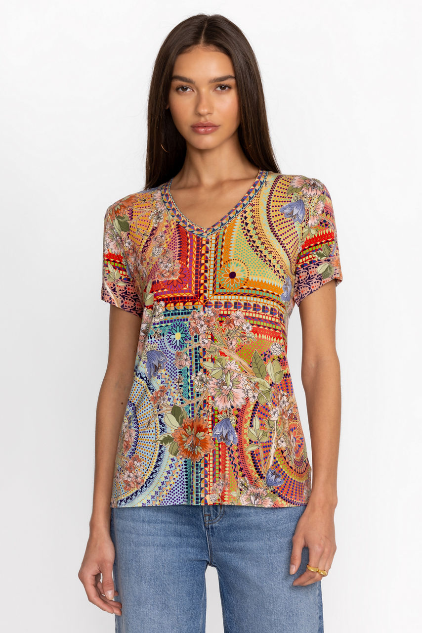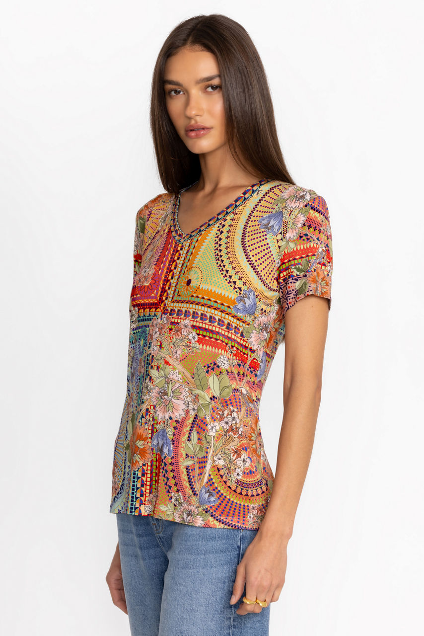 A feminine twist on the classic t-shirt, the Janie Favorite Short Sleeve V-neck Tee is a versatile addition to your everyday wardrobe. Carefully crafted with a hint of stretch, this elegant tee is perfect for layering. Pair with white linen pants and a denim jacket for cooler days.