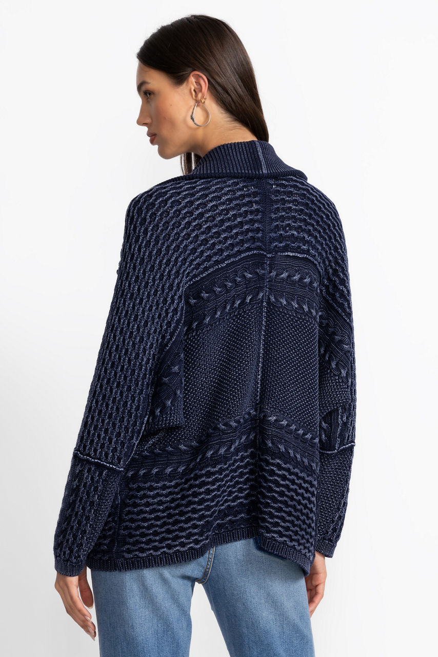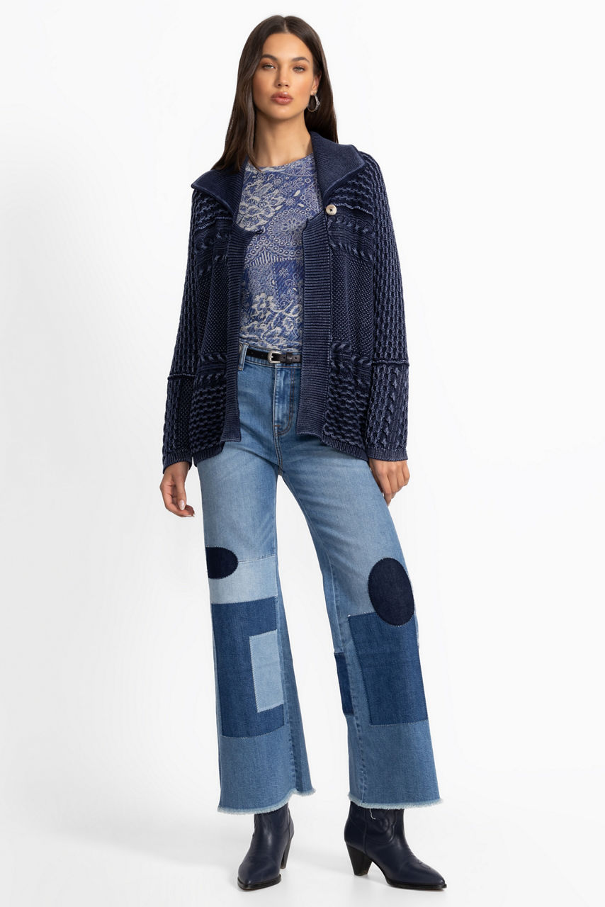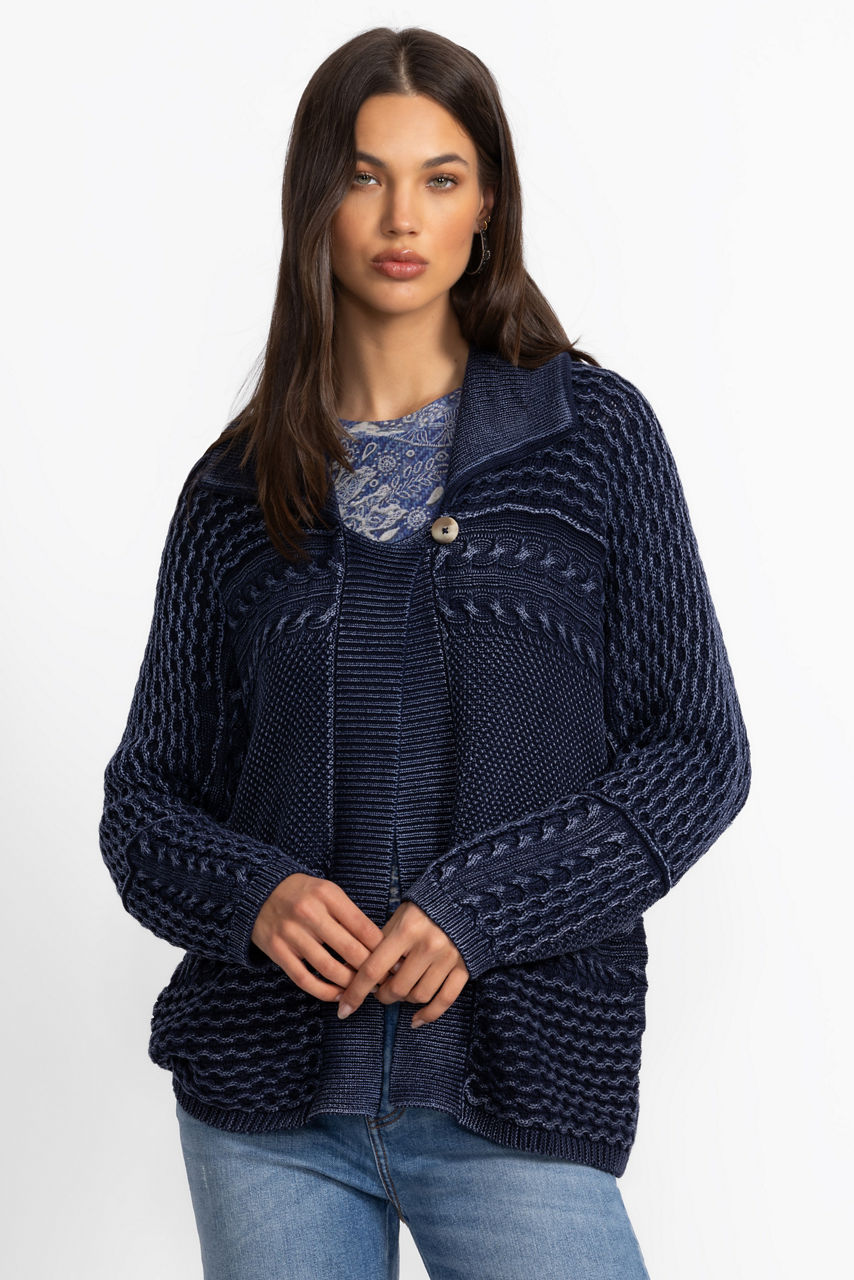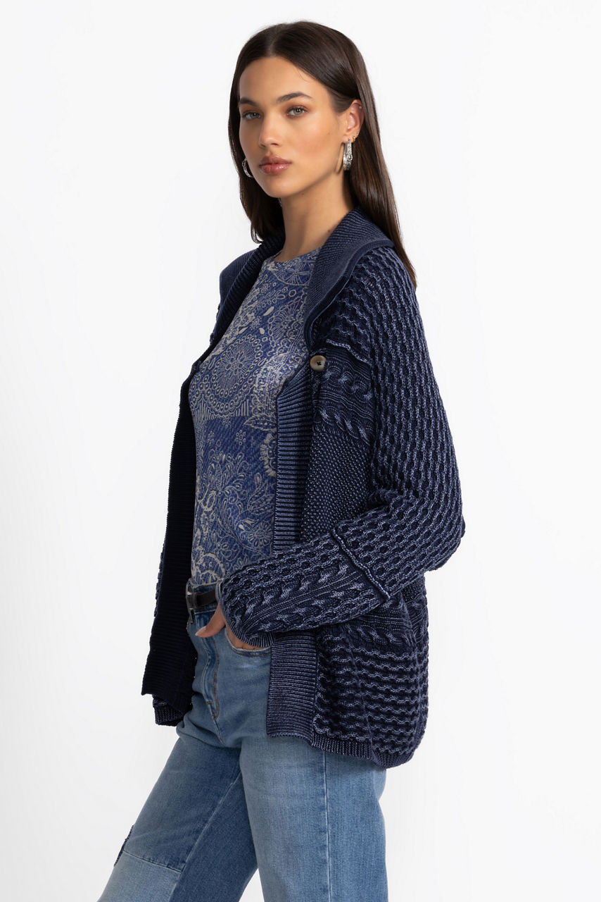 Crafted from 100% breathable cotton, the Knit Blocked Cardigan creates a stylish outer layer brilliantly designed with color blocked hues of blue. Featuring an open front with a wide lapel and relaxed-fit Dolman sleeves, this cardigan perfectly elevates any casual look. Pair with dark wash denim and a tee for a beautifully coordinated ensemble.