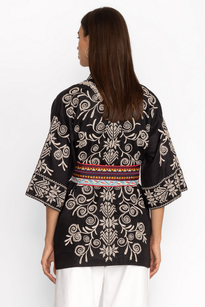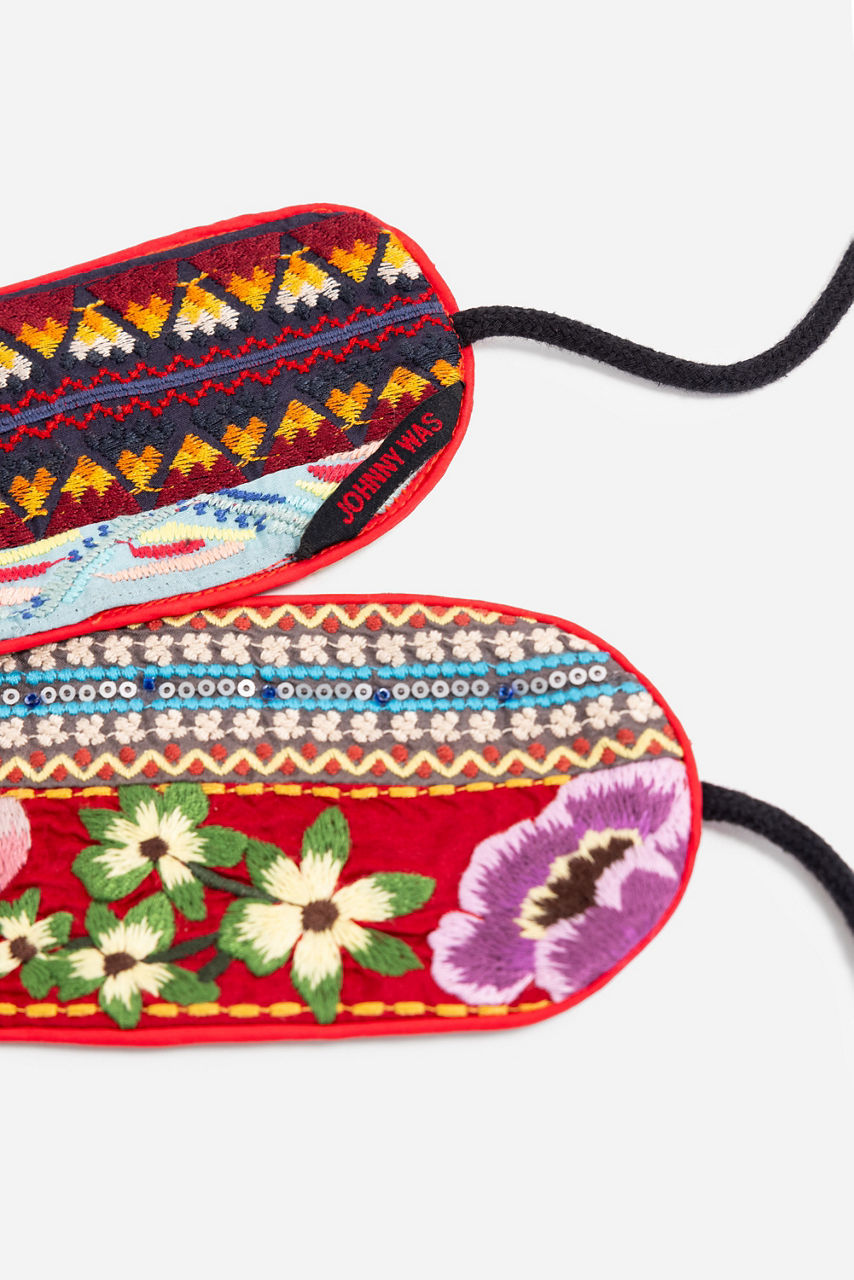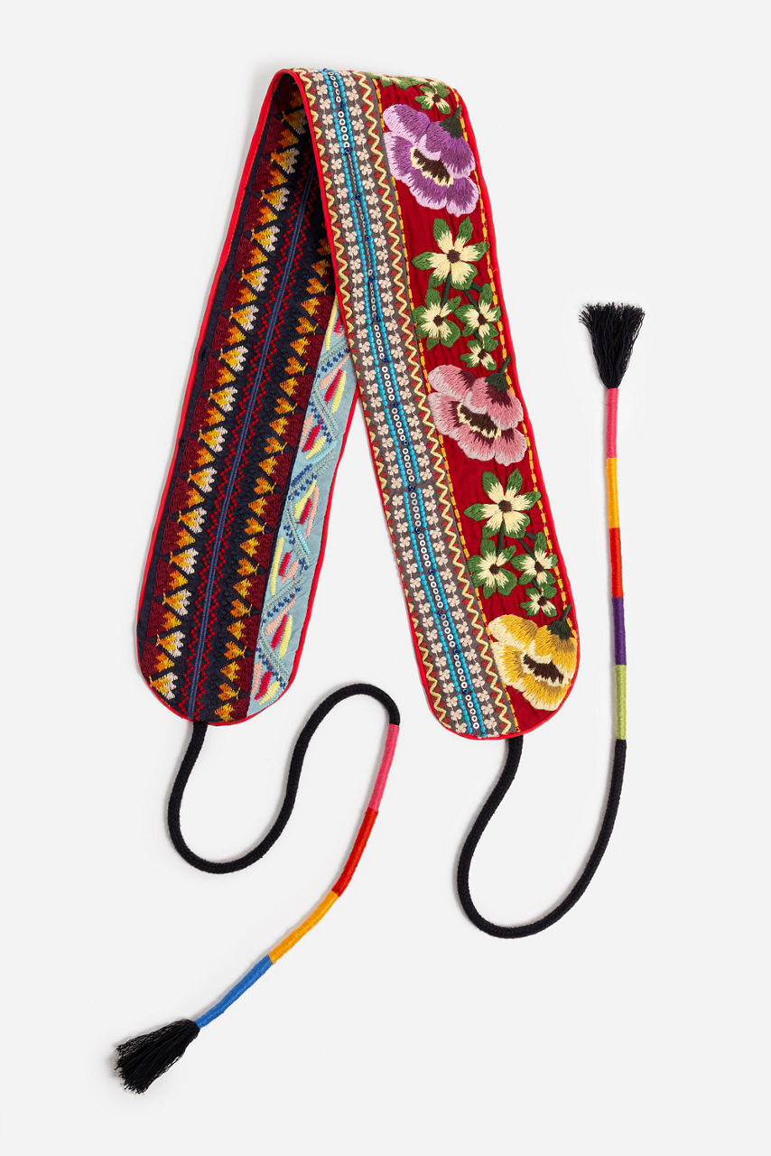 Crafted from 100% luxurious silk, the Mila Belt is the perfect way to add a splash of color to your look. Featuring a cummerbund-style front with ties at the back, this intricately embroidered belt is fully reversible with two unique designs to choose from. With a favorite maxi dress to enhance the look.